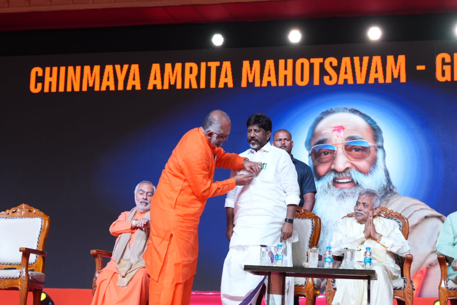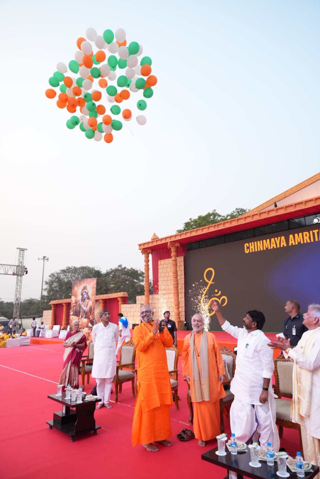 समारोह में चिन्मया मिशन हैदराबाद के प्रभारी स्वामी सर्वेशानंद, अध्यक्ष हरीश कुमार, आंध्र प्रदेश के पूर्व मुख्य सचिव तथा चिन्मया अमृत महोत्सव समिति ग्रेटर हैदराबाद के संयोजक एल. वी. सुब्रह्मण्यम, गीर्वाणी रेड्डी, एम. अप्पा राव तथा विभिन्न संगठनों से जुड़े अनेक आध्यात्मिक नेताओं उपस्थित थे।