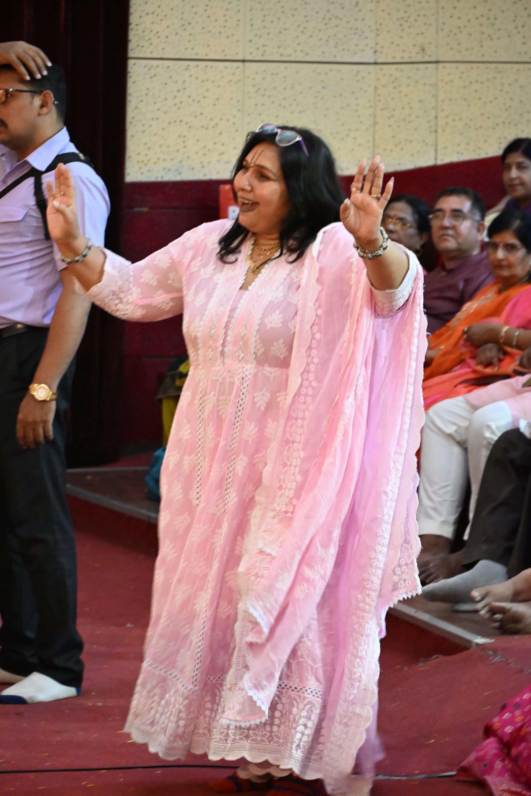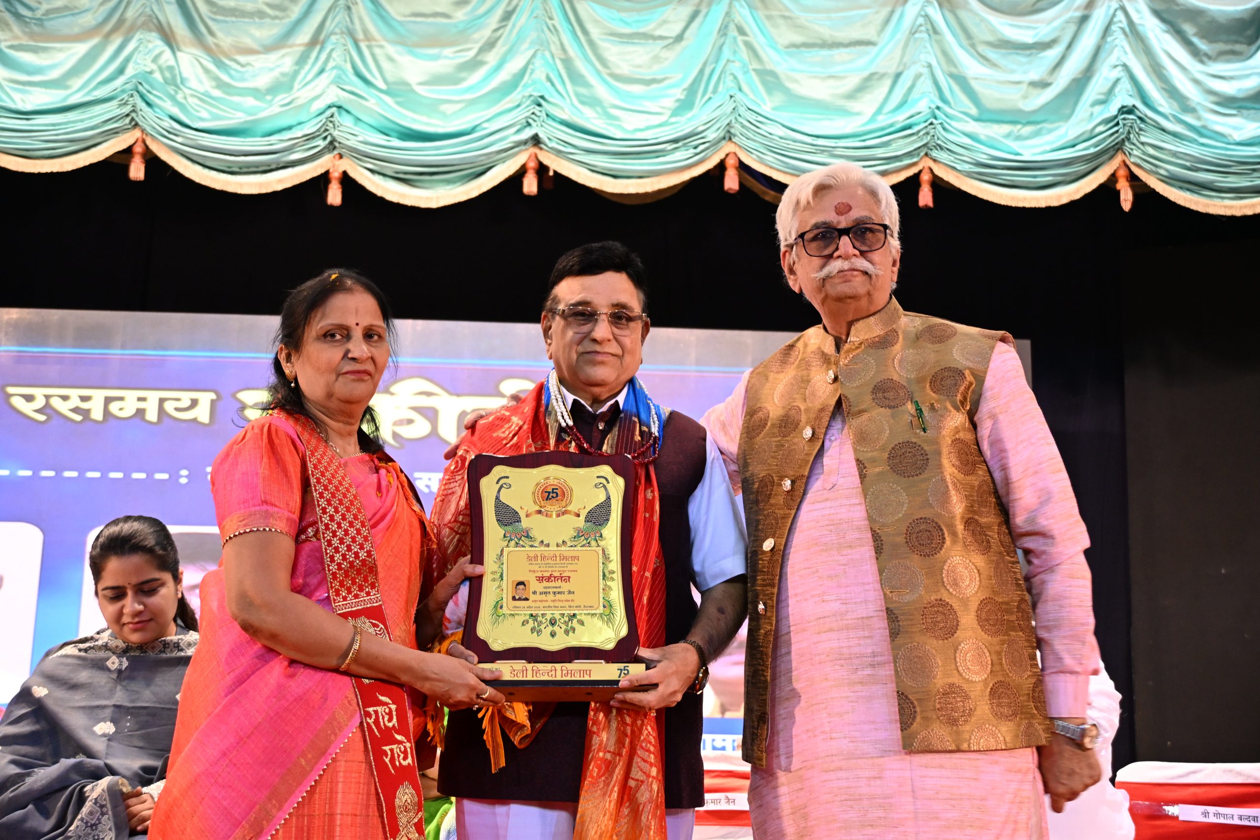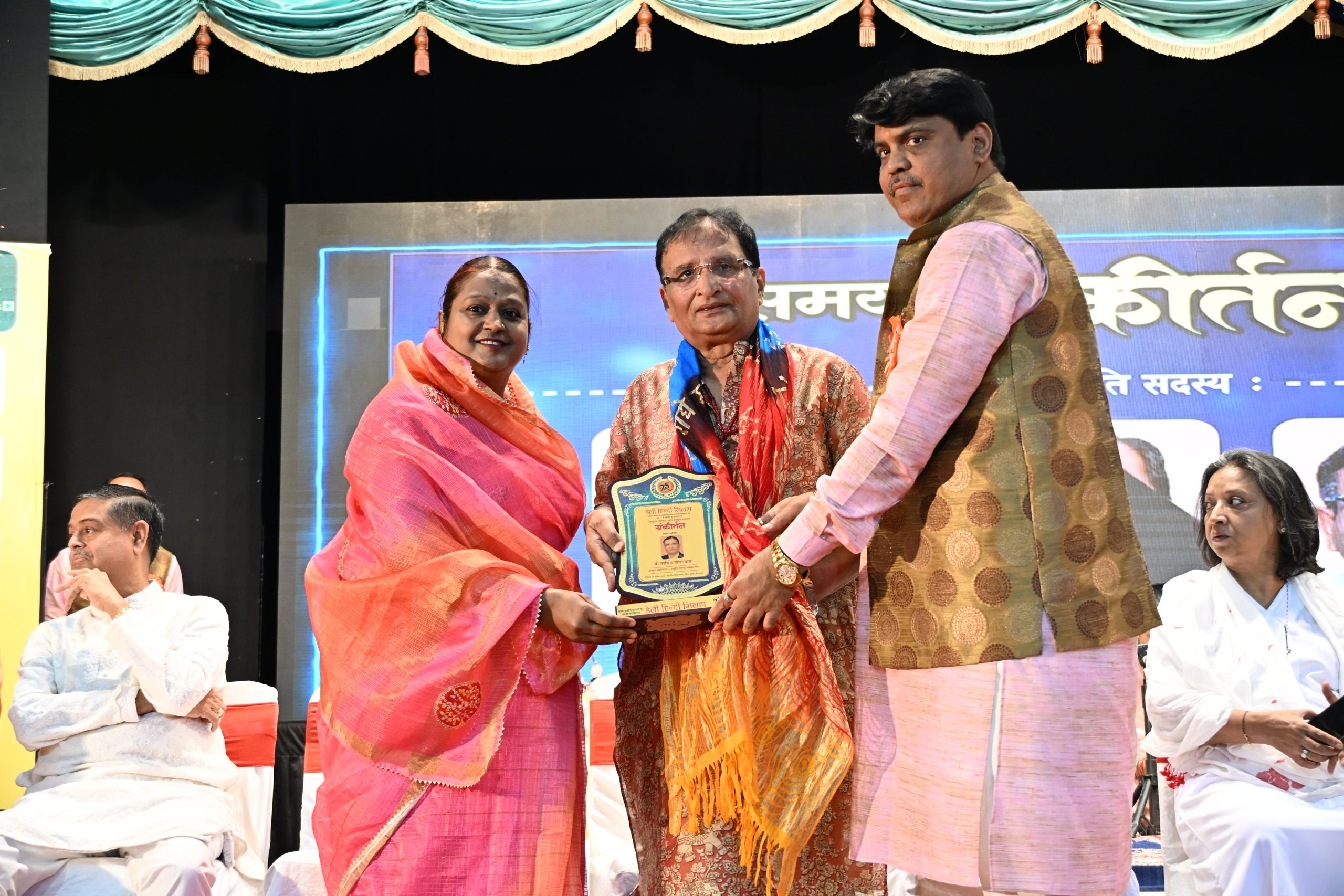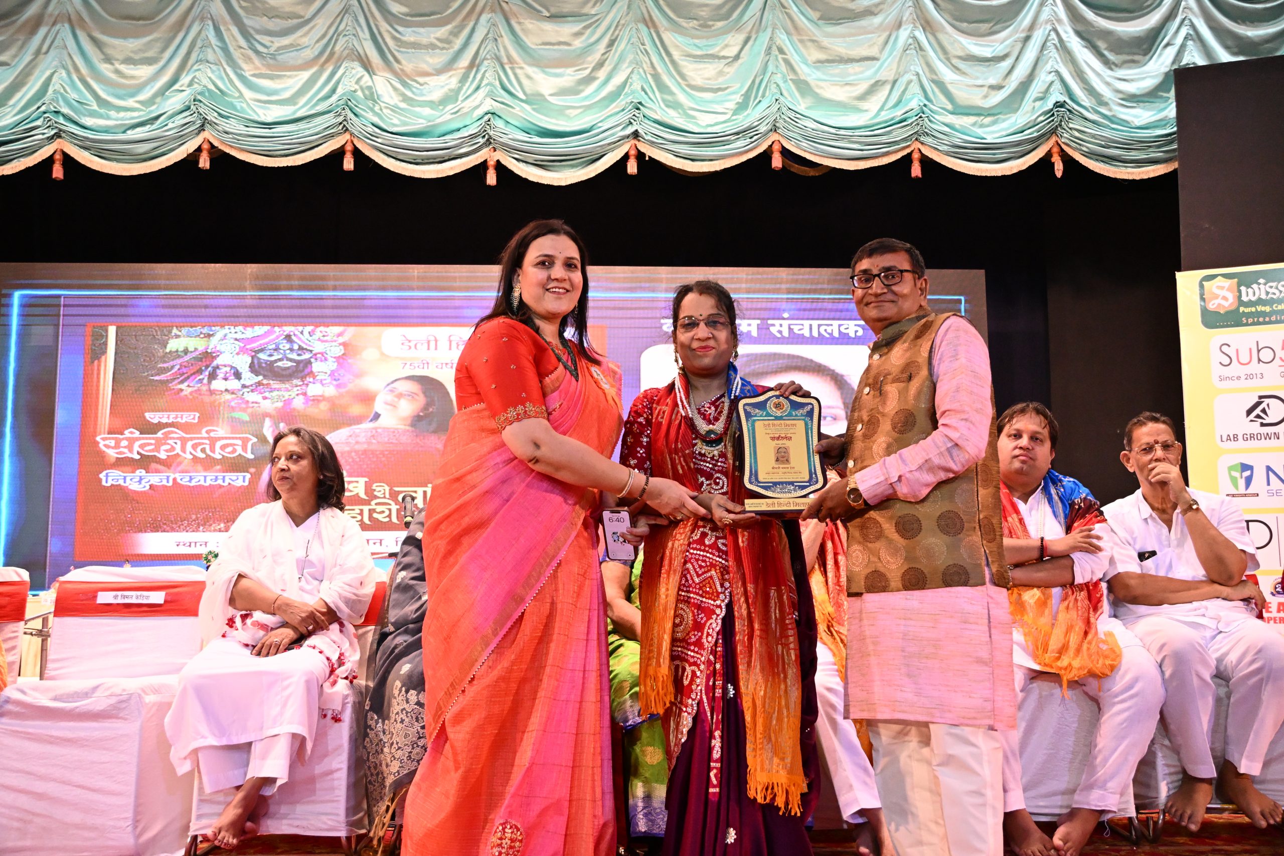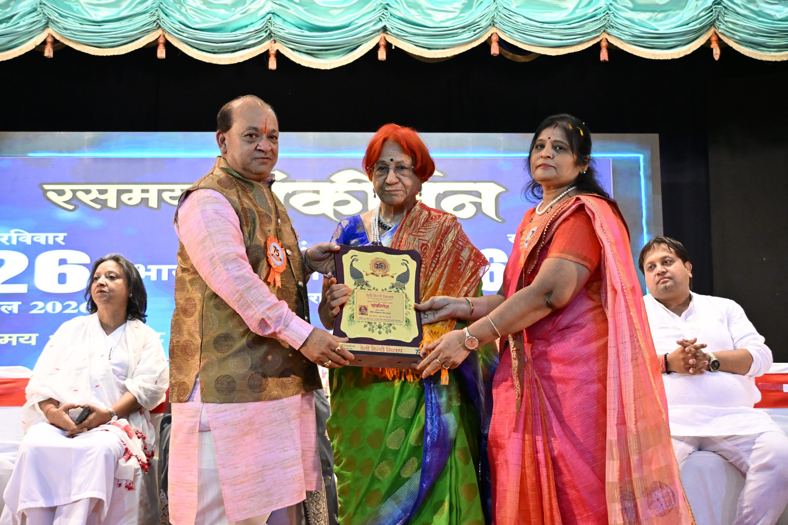 भजन गायिका निकुंज कामरा का सम्मान डेली हिन्दी मिलाप की संपादिका विपमा वीर, प्रधान संयोजक तरुण कुमार झँवर सहित अन्यों ने किया। कार्यक्रम का संचालन करते हुए प्रमिला व्यास ने कहा कि डेली हिन्दी मिलाप 75वीं वर्षगांठ मना रहा है, जिसकी शुरुआत ठाकुरजी के नाम रसमय कीर्तन से हुई। बिहारीजी की जिन पर कृपा होती है, वही कार्यक्रम में आते हैं।