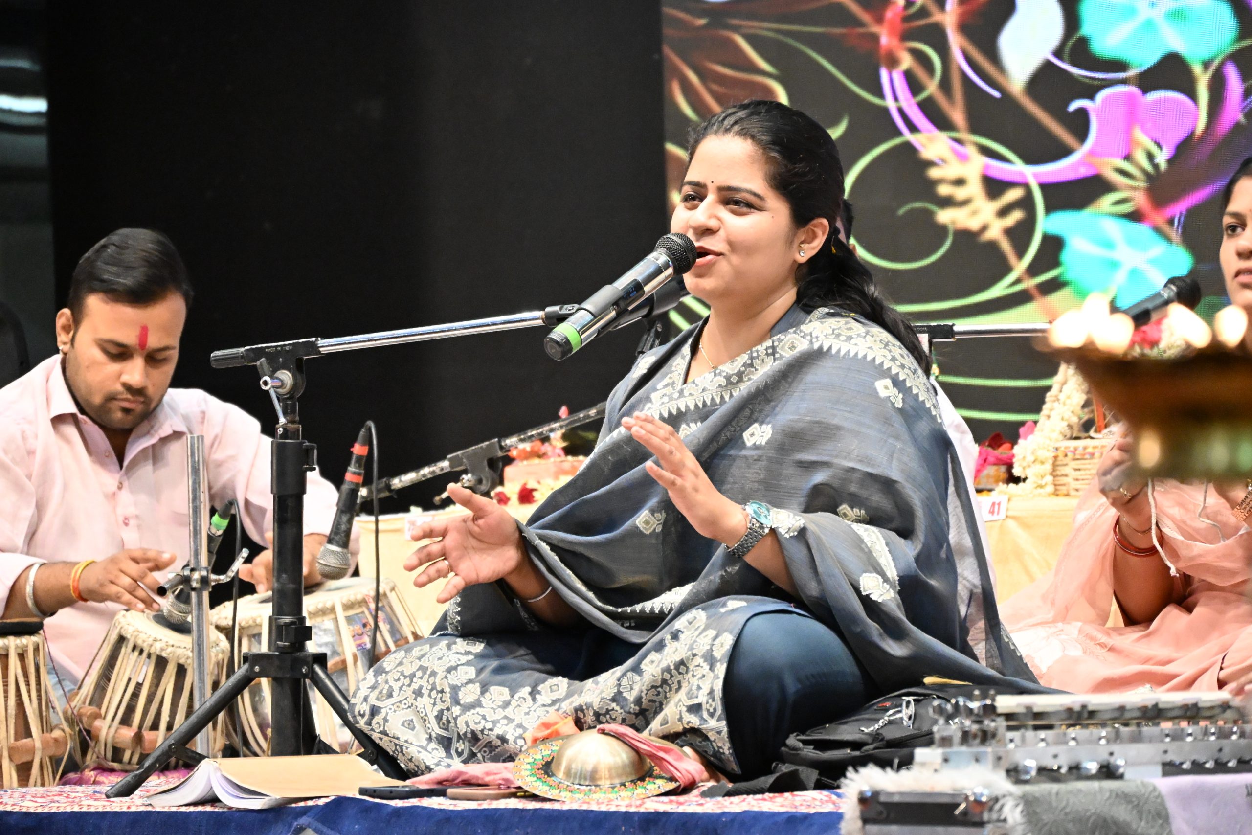 अंतरराष्ट्रीय ख्याति प्राप्त भजन गायिका निकुंज कामरा ने भजन की शुरुआत श्री राधे गोविंद मन भजले हरि का प्यारा नाम है से की। बड़ी संख्या में उपस्थित भक्तों ने देर तक भजनों का आनंद नाचते गाते लिया। साथ ही फूलों की होली उत्साह के साथ खेली गई। नगर के विभिन्न क्षेत्रों से लोगों ने लड्डू गोपाल की आकर्षक झाँकियों के साथ कार्यक्रम को भक्तिमय बनाया।