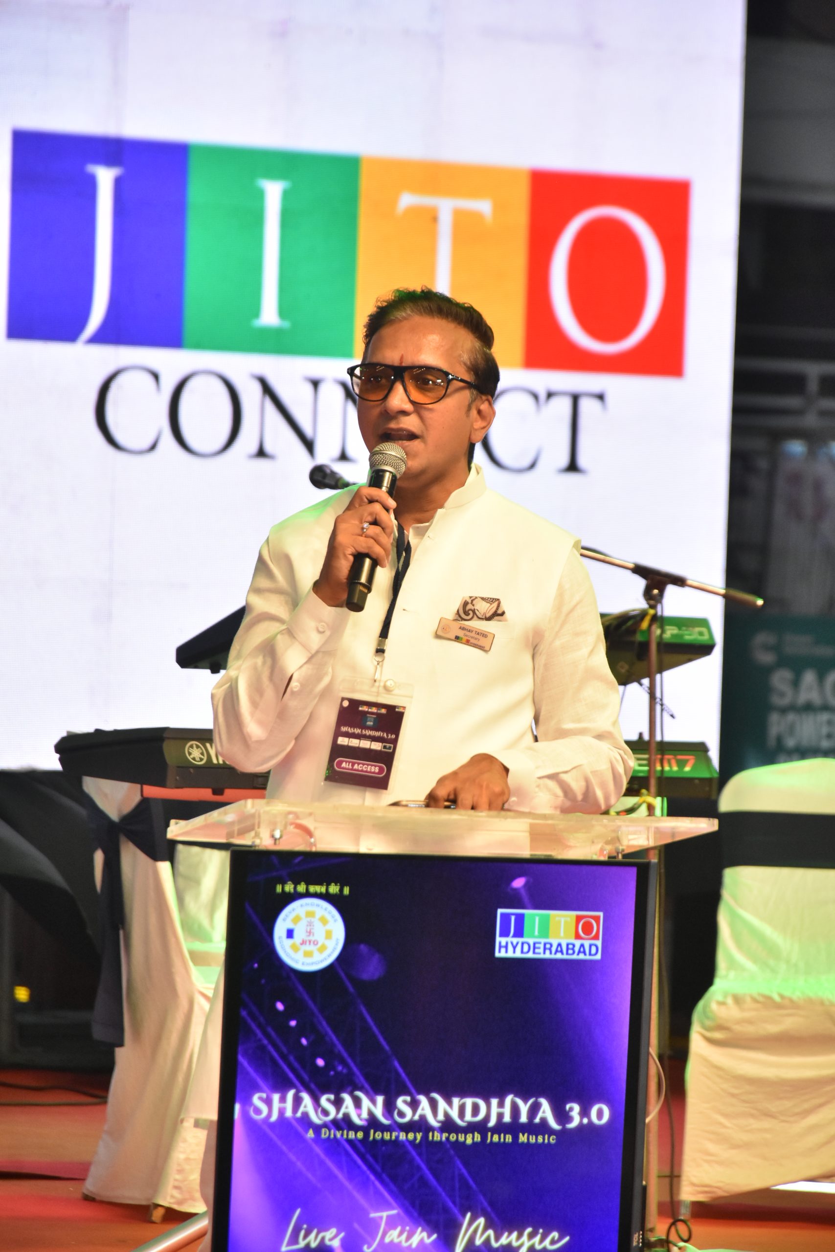 जीतो हैदराबाद के चेयरमैन रोहित कोठारी ने सभी का स्वागत करते हुए कहा कि शासन संध्या में सम्मिलित होकर इतिहास बनाया। आज लगभग 300 नये जीतो सदस्य हैदराबाद से जुड़े हैं। हैदराबाद चैप्टर ने डेढ़ साल पहले अपना नया कार्यालय जीतो के फंड से बनाया। माधापुर और कोंडापुर में 30 रूम का हॉस्टल चलाया जा रहा है। जीतो व्यापार के लिए जाना जाता है, लेकिन धार्मिक कार्य भी किए जाते हैं।