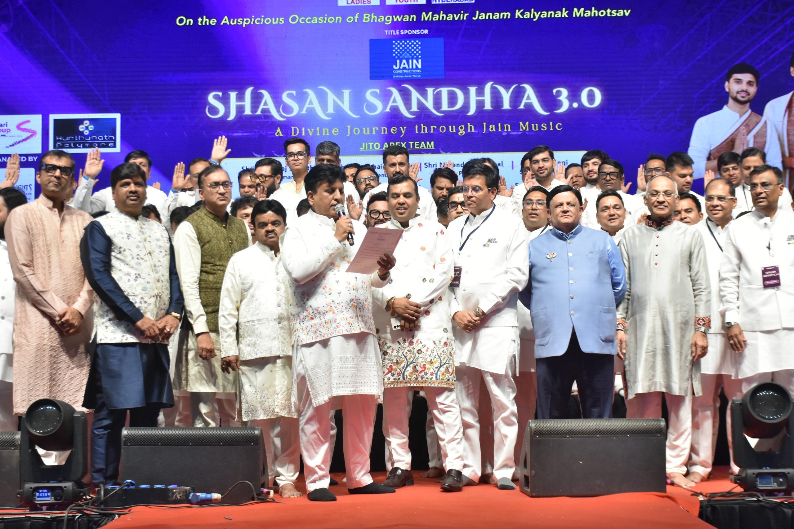 हैदराबाद, जैन इंटरनेशनल ट्रेड ऑर्गनाइजेशन (जीतो) हैदराबाद चैप्टर द्वारा भगवान महावीर जन्म कल्याणक के उपलक्ष्य में आयोजित शासन संध्या 3.0 में भजन गायकों ने भक्ति की गंगा बहायी, जिसने हजारों की संख्या में उपस्थित भक्तों को प्रभु की भक्ति से सराबोर किया।