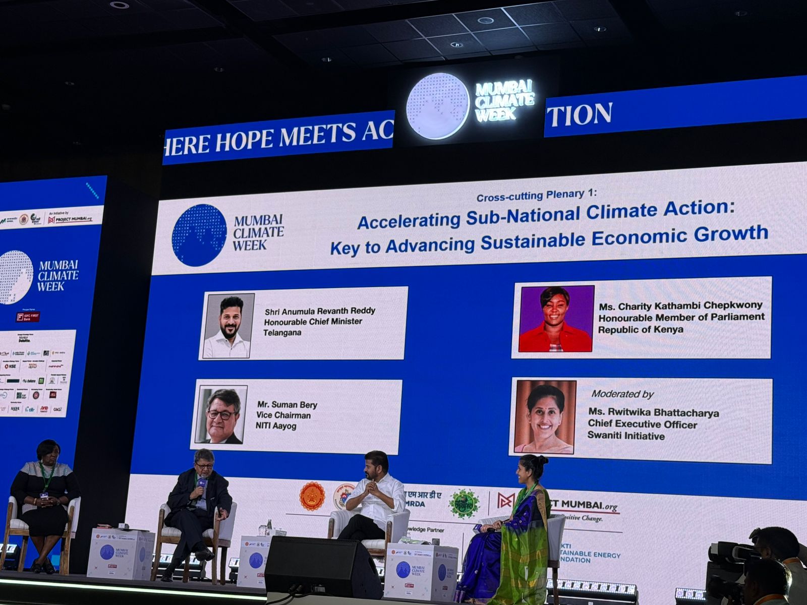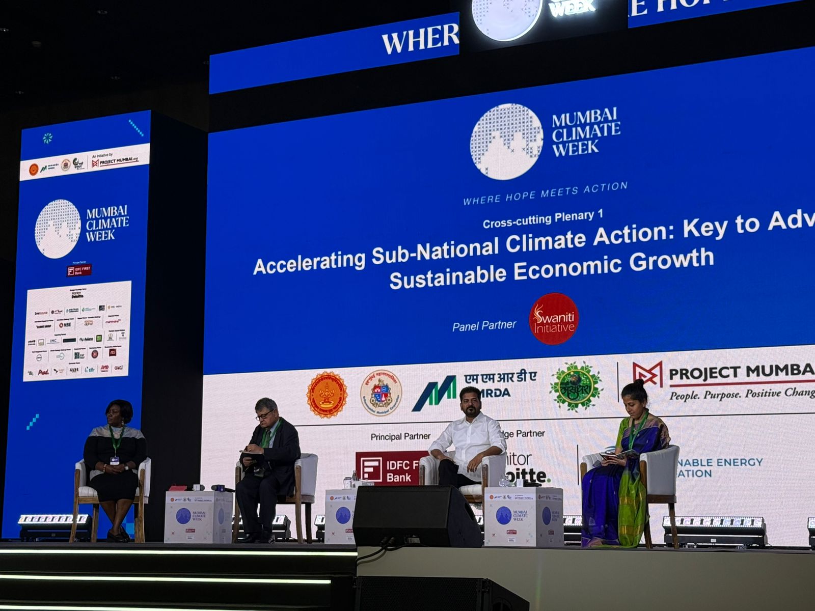 कोविड और जलवायु परिवर्तन के संयुक्त प्रभाव का उल्लेख करते हुए रेवंत ने वर्तमान स्थिति को जलवायु आपातकाल के रूप में परिभाषित करते कहा कि विकास, निवेश और रोजगार सृजन को स्थिरता के साथ आगे बढ़ाना आवश्यक है। हैदराबाद के संदर्भ में उन्होंने बताया कि इलेक्ट्रिक वाहनों पर कर हटाए जाने से ईवी अपनाने में तेजी आई है और ईवी कंपनियों के साथ विनिर्माण निवेश पर चर्चा जारी है।