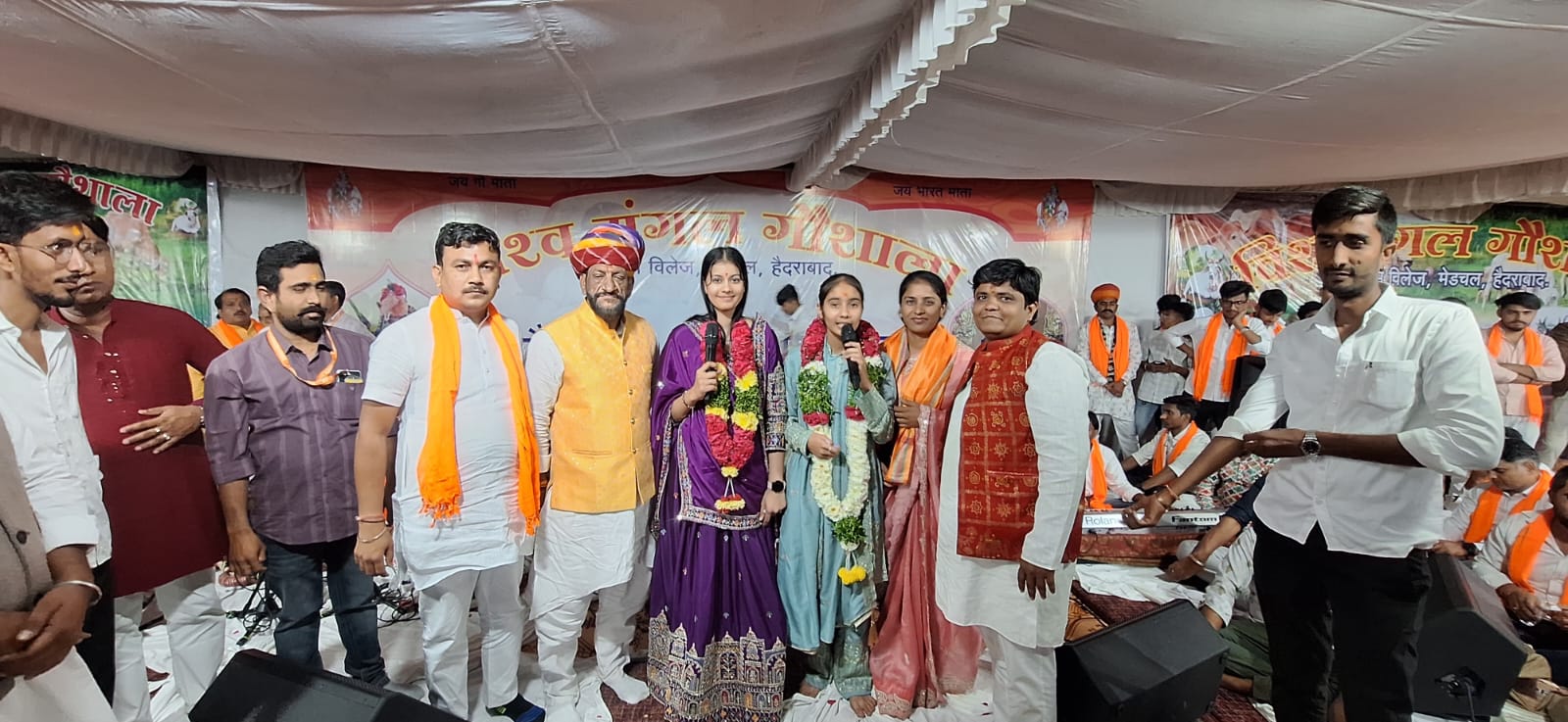 हैदराबाद, मेड़चल सोमारम विलेज स्थित विश्व मंगल गौशाला में छत्तीस कौम गौभक्तों के सानिध्य में एक शाम गौमाता के नाम जागरण का आयोजन किया गया। मुख्य सचिव शांतिलाल सुथार ने बताया कि गौ सेवार्थ विशाल जागरण का आयोजन किया गया। मुख्य अतिथि व सम्मानित अतिथियों के करकमलों द्वारा दीप प्रज्वलित कर कार्यक्रम का शुभारम्भ किया गया। गणेश वंदना के साथ स्थानीय भजन गायक विशाल श्रीमाली ने जागरण का शुभारम्भ किया।