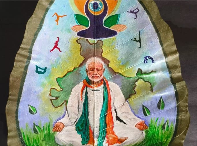 6 महीना पहले पीपल के पत्ते पर बनाया मोदी का चित्र