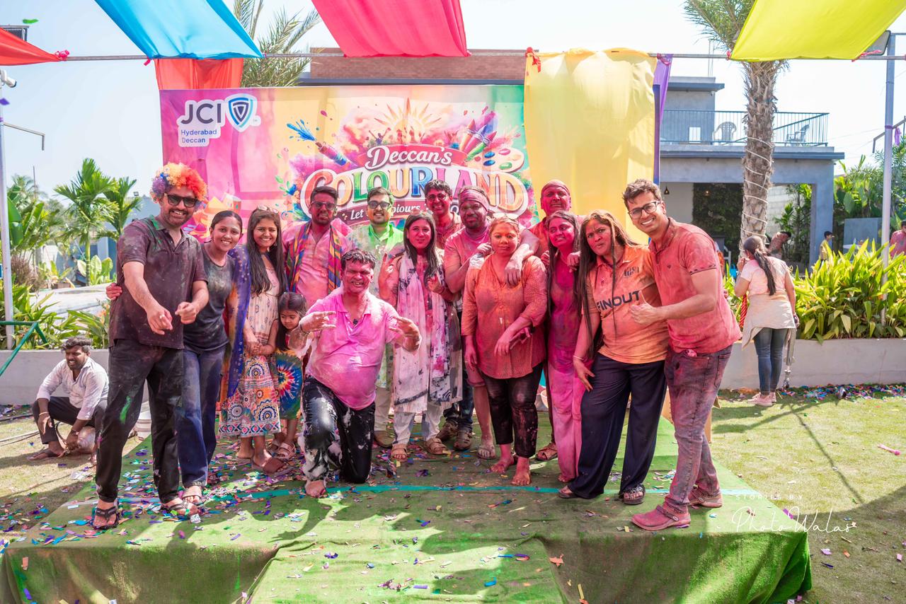 हैदराबाद, जेसीआई हैदराबाद डेक्कन द्वारा डेक्कनस कलरलैंड-लेट द कलर्स टेक ओवर रंगारंग होली उत्सव का आयोजन अब्दुल्लापुरमेट कोहेडा विलेज, आरा क्रेसेंट में भव्यता से किया गया।