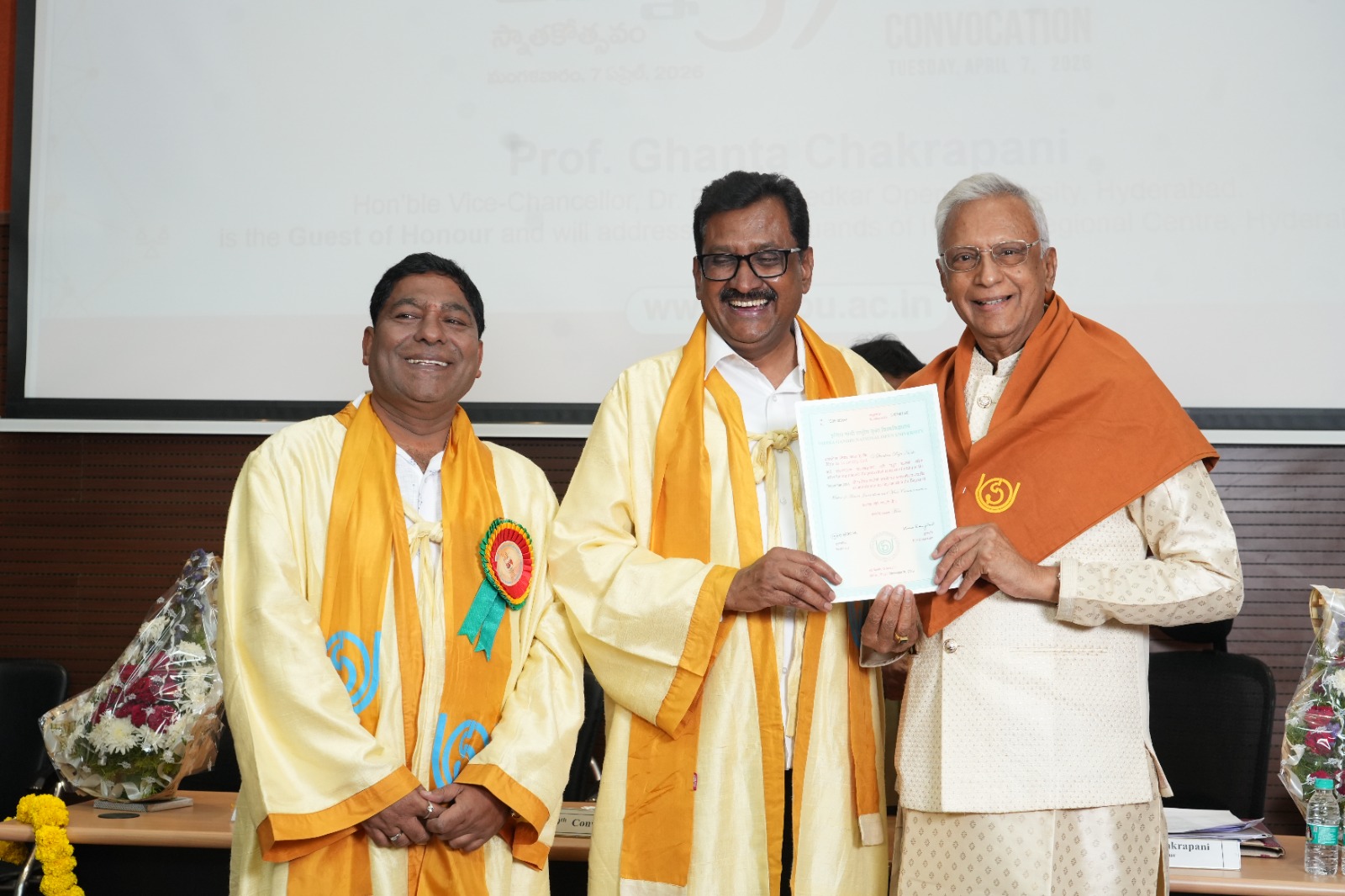 प्रो. घंटा चक्रपाणि ने दीक्षांत समारोह को संबोधित करते हुए कहा कि दूरस्थ तथा मुक्त शिक्षा पारंपरिक शिक्षा का विकल्प नहीं है, वरन यह हमारी उच्च शिक्षा प्रणाली का एक अनिवार्य और समान स्तंभ है। यह आजीवन सीखने, कौशल विकास और समावेशी विकास में महत्वपूर्ण योगदान देता है। अनेक मायनों में यह शिक्षा की लोकतांत्रिक भावना का प्रतिनिधित्व करती है। भारत के सबसे महत्वपूर्ण शैक्षिक नवाचारों में से एक है।
