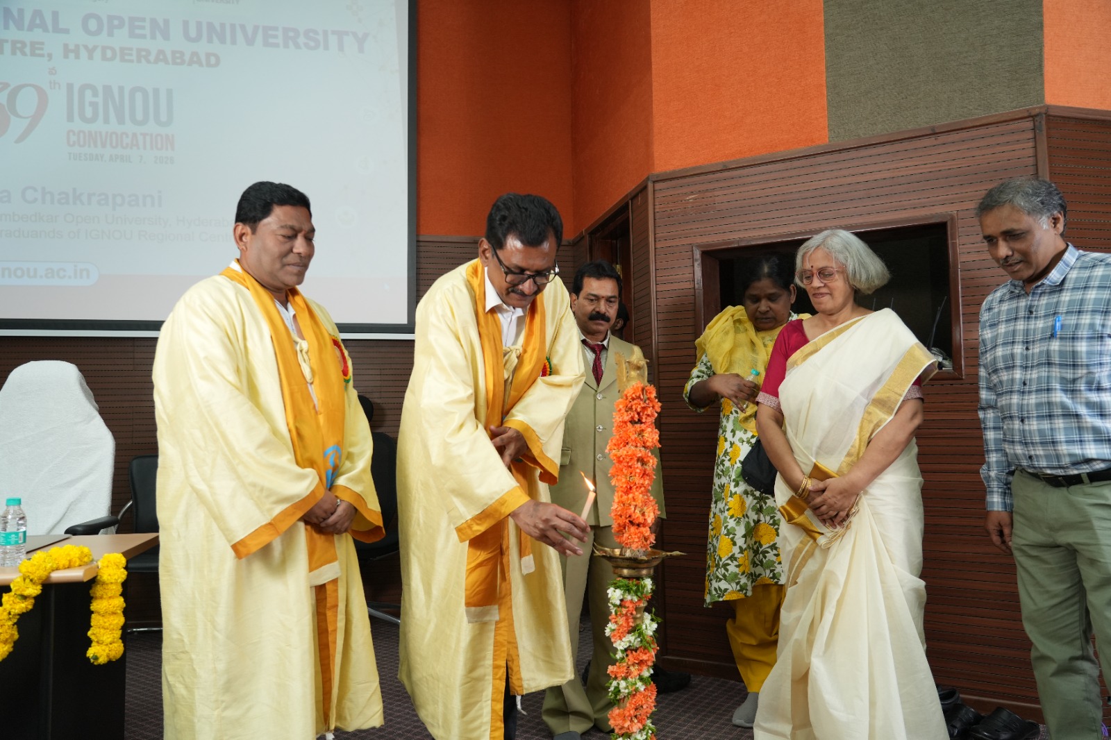 हैदराबाद, इंदिरा गांधी राष्ट्रीय मुक्त विश्वविद्यालय के क्षेत्रीय केंद्र हैदराबाद का 39 वां दीक्षांत समारोह नामपल्ली स्थित तेलंगाना मीडिया अकादमी में आयोजित किया गया। अवसर पर 2,815 डिग्री, डिप्लोमा और प्रमाण-पत्र प्रदान किए गए। इस कार्यक्रम के विशिष्ट अतिथि डा. बी.आर. अंबेडकर मुक्त विश्वविद्यालय के कुलपति प्रो. घंटा चक्रपाणि थे।