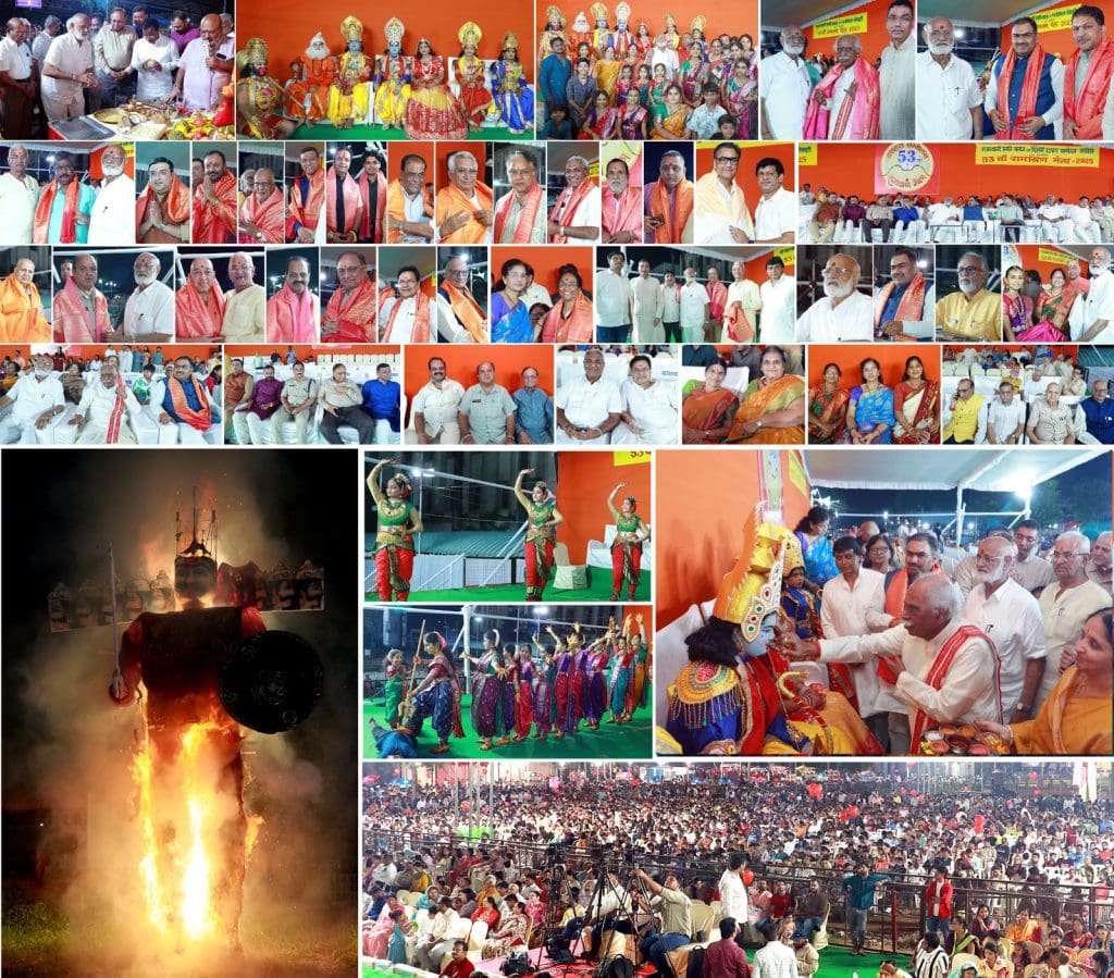 भाजपा के संगठन मंत्री चंद्रशेखर ने सभी राम भक्तों को शुभकामनाएँ देते हुए कहा कि अयोध्या में भव्य श्रीरामजी का मंदिर का निर्माण किया गया। सभी को संस्कृति को बचाने के लिए ऐसे कार्यक्रमों का आयोजन करते रहना चाहिए। तत्पश्चात संयोजक मनोज जायसवाल, सुमित राठी, पवन कुमार, घनश्याम तोष्नीवाल, श्रीनिवास लोया, रवि हेडा, पवन मिश्रा, जुगल सोनी, गद्दाम रघु, नवल सांखला, नारायण, आदित्य राठी द्वारा रावण, मेघनाथ व कुंभकरण के विशालकाय पुतलों का दहन किया गया। गोविंद राठी ने मीडिया, पुलिस विभाग, अग्निशमन विभाग, तेलंगाना सांस्कृतिक विभाग एवं आर एंड बी, बिजली विभाग एवं प्रदर्शनी समिति को धन्यवाद दिया।