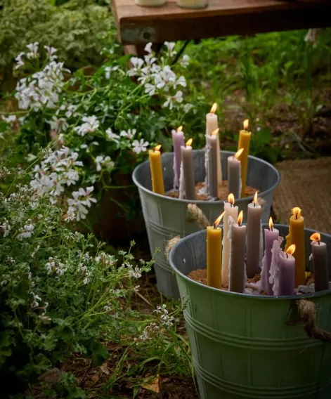 यदि आप अपने गार्डन की लाइटिंग को थोड़ी भव्यता देना चाहते हैं तो बाहरी हिस्से में बड़े कैंडल होल्डर लगाएँ, जो आयरन या ब्रास के बने होते हैं। इन होल्डर्स को बाहर पूरी तरह धूप और पानी से बचाने की सुविधा के मद्देनजर से तैयार किया जाता है। रॉट आयरन से बने चर्च कैंडल्स को इनमें लगाया जा सकता है और इन्हें सीधे पौधों के बीच में रखकर गार्डन को एक नया लुक दे सकते हैं।
