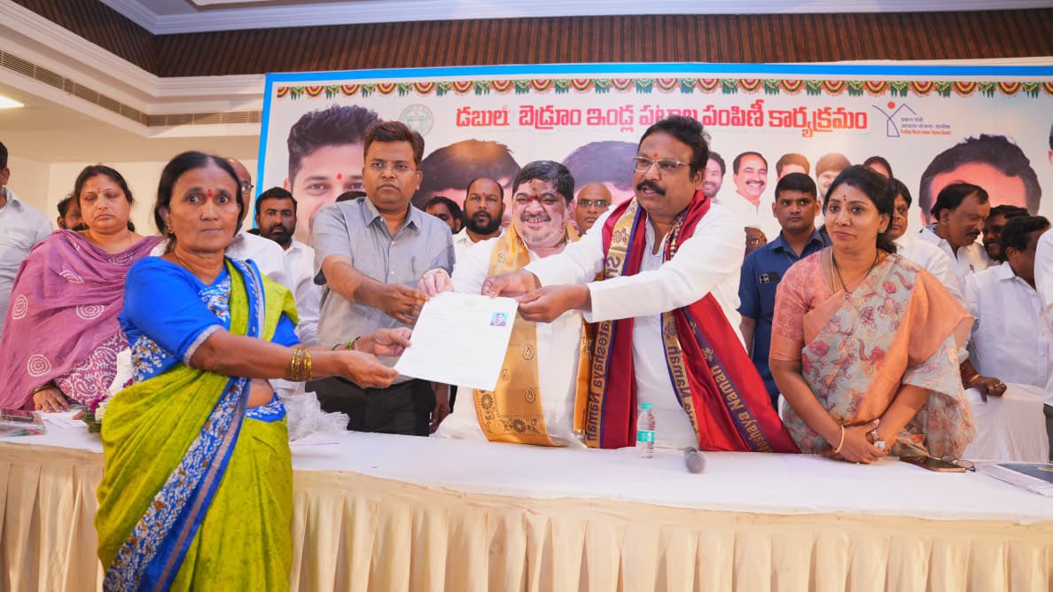 हैदराबाद, सिकंदराबाद कंटोनमेंट विधानसभा क्षेत्र के क्लासिक गार्डन्स में आयोजित कार्यक्रम में हैदराबाद जिला प्रभारी व परिवहन मंत्री पोन्नम प्रभाकर ने 155 लाभार्थियों को डबल बेडरूम आवासों के पट्टे वितरित किए। आधिकारिक जानकारी के अनुसार, मारेडपल्ली के एसीएस नगर, ओल्ड मारेडपल्ली, साई चरण कॉलोनी और कट्टामैसम्मा, सिकंदराबाद क्षेत्र के लाभार्थियों को डबल बेडरूम आवासों के पट्टे प्रदान किये गए। कार्यक्रम में विधायक गणेश और पूर्व पार्षद दीपिका की उपस्थिति रही।
