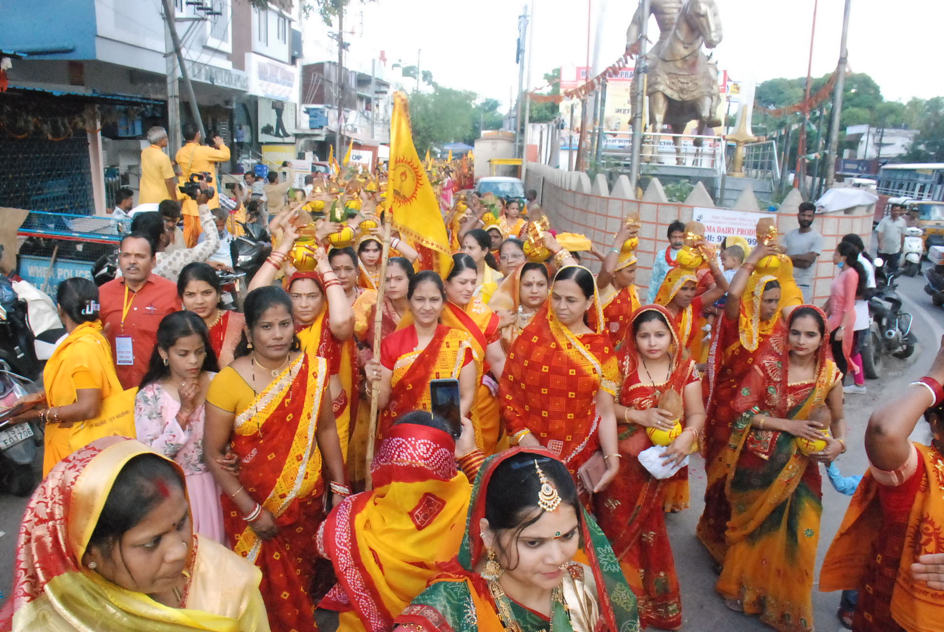 बेगम बाजार स्थित रामनाथ आश्रम से महिलाएँ व युवितयाँ कलश धारण क्षेत्र के विभिन्न मार्गों से हो होते हुए विराट यज्ञ शाला पहुँचीं, जहाँ स्वागत द्वार पर भव्य स्वागत किया गया। विभिन्न क्षेत्र के मार्गों में कलश धारण किए महिलाओं पर पुष्प वर्षा की गई। अखिल विश्व गायत्री परिवार, हैदराबाद द्वारा अखंड दीप व वंदनीय माताजी के जन्म शताब्दी वर्ष के उपलक्ष्य एवं राष्ट्र को सशक्त एवं शक्तिशाली बनाने हेतु राष्ट्र जागरण 108 कुण्डीय गायत्री महायज्ञ एवं ज्योति कलश यात्रा का आयोजन किया गया।