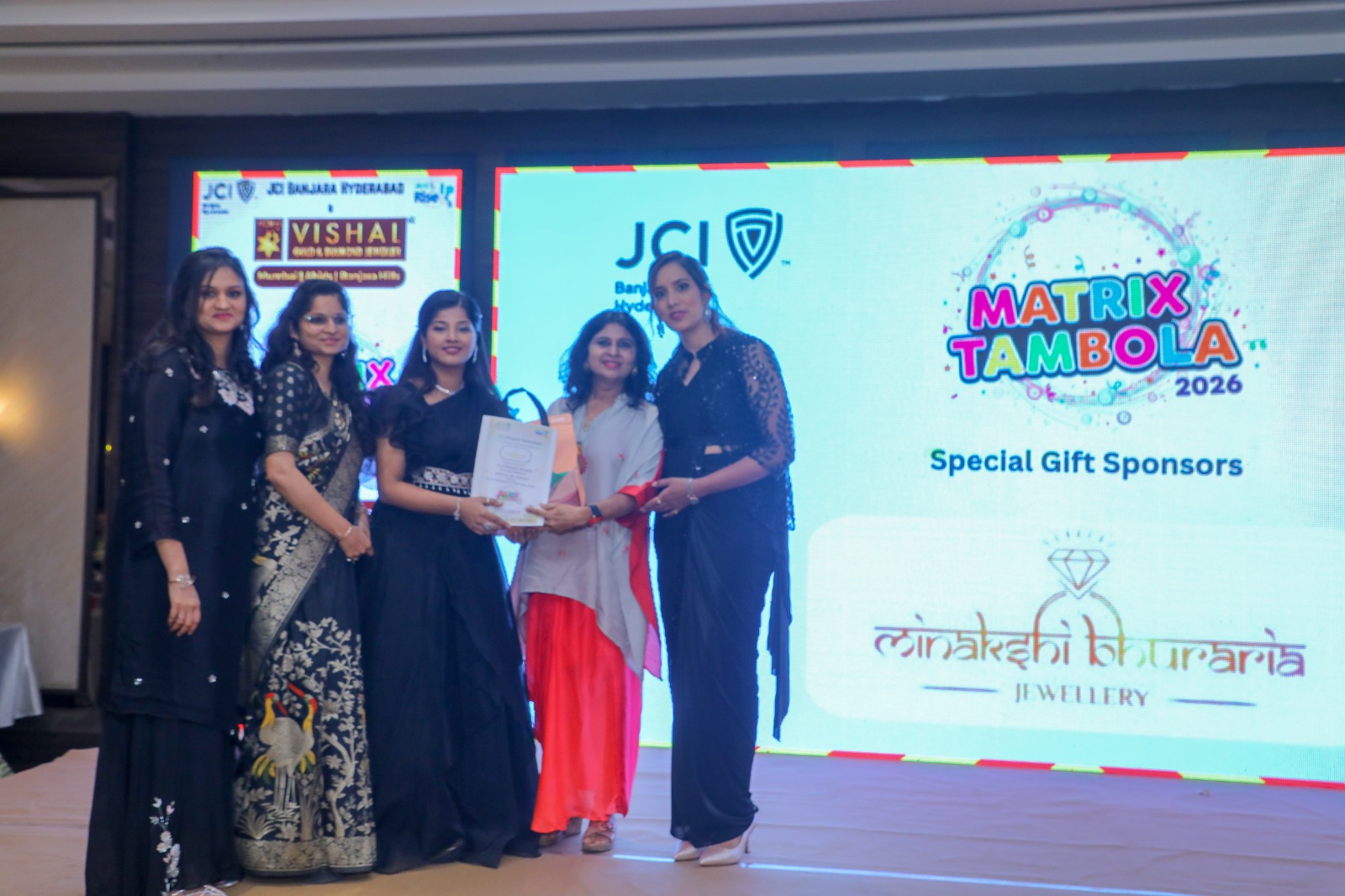 हैदराबाद, जेसीआई इंडिया के प्रतिष्ठित जोन 12 के अंतर्गत जेसीआई बंजारा हैदराबाद की महिला सशक्तिकरण विंग द्वारा निधि एकत्र करने के लिए मैट्रिक्स तंबोला-2026 का आयोजन सिकंदराबाद एला लिबर्टी में किया गया। कार्यक्रम का संचालन वाइस चेयरपर्सन डिज़िग्नेट वूमेन एम्पावरमेंट विंग-2026 निकिता भट्टड़ ने किया। औपचारिक रूप से शुभारंभ जेसीआई बंजारा हैदराबाद (अध्यक्ष 2025) सरवेश मालानी द्वारा किया गया।
