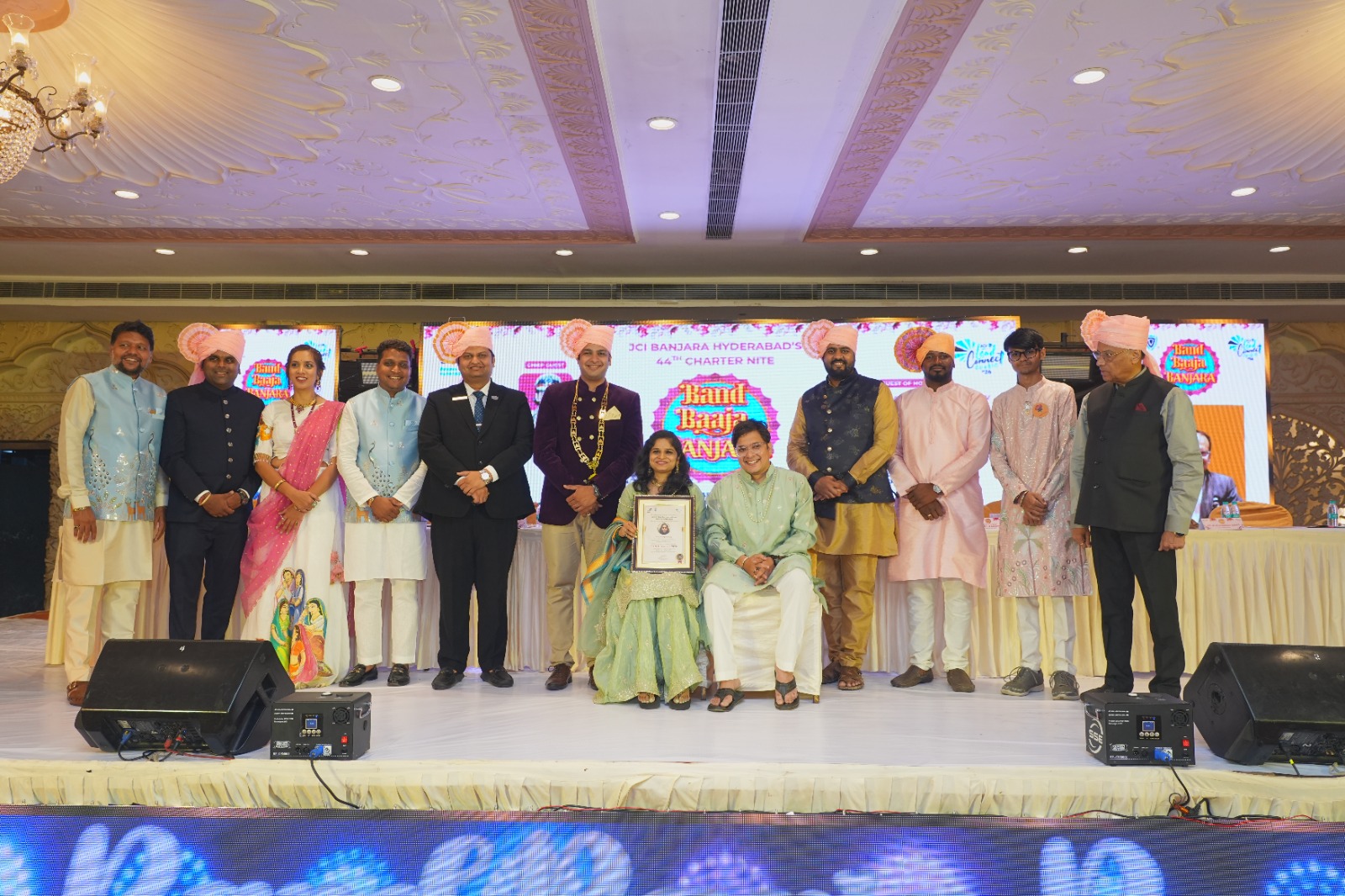 हैदराबाद, जेसीआई बंजारा हैदराबाद द्वारा 44वीं चार्टर नाइट का आयोजन बैंड बाजा बंजारा की थीम के साथ सिकंदराबाद स्थित क्लासिक गार्डन्स में उत्साह और उमंग के साथ किया गया।
