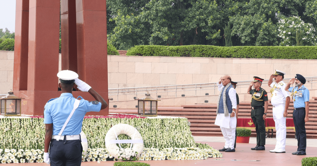 कारगिल विजय दिवस – रक्षा मंत्री ने राष्ट्रीय समर स्मारक पर पुष्पांजलि अर्पित की