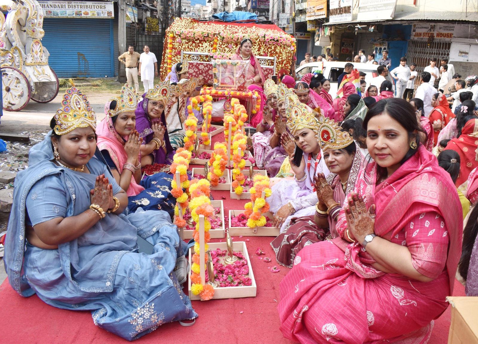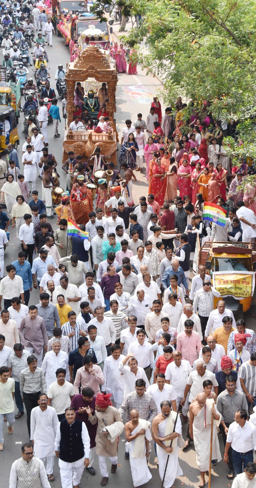 महावीर जन्म कल्याणक महोत्सव के अवसर पर नुमाइश मैदान में आयोजित समारोह से पूर्व श्री महावीर स्वामी जैन श्वेतांबर मंदिर, फीलखाना से गाजे-बाजे, भजन मंडली सहित विभिन्न झांकियों तथा नारों के साथ भव्य वरघोड़ा निकाला गया। यह सिद्दिअम्बर बाजार, उस्मानगंज, मोजमजाही मार्केट से होते हुए कार्यक्रम स्थल नुमाइश मैदान में पहुंच कर धर्मसभा में परिवर्तित हुआ। कार्यक्रम में स्वामी वात्सल्य के लाभार्थी शांतिलाल-ऊषा बडोला, खुशबू-सुनील चोपडा, गीत चोपडा, रोशनी-कैप्टन आदर्श गोलेच्छा, शौर्या, अंश गोलेच्छा परिवार का सम्मान संघ के पदाधिकारियों द्वारा किया गया।