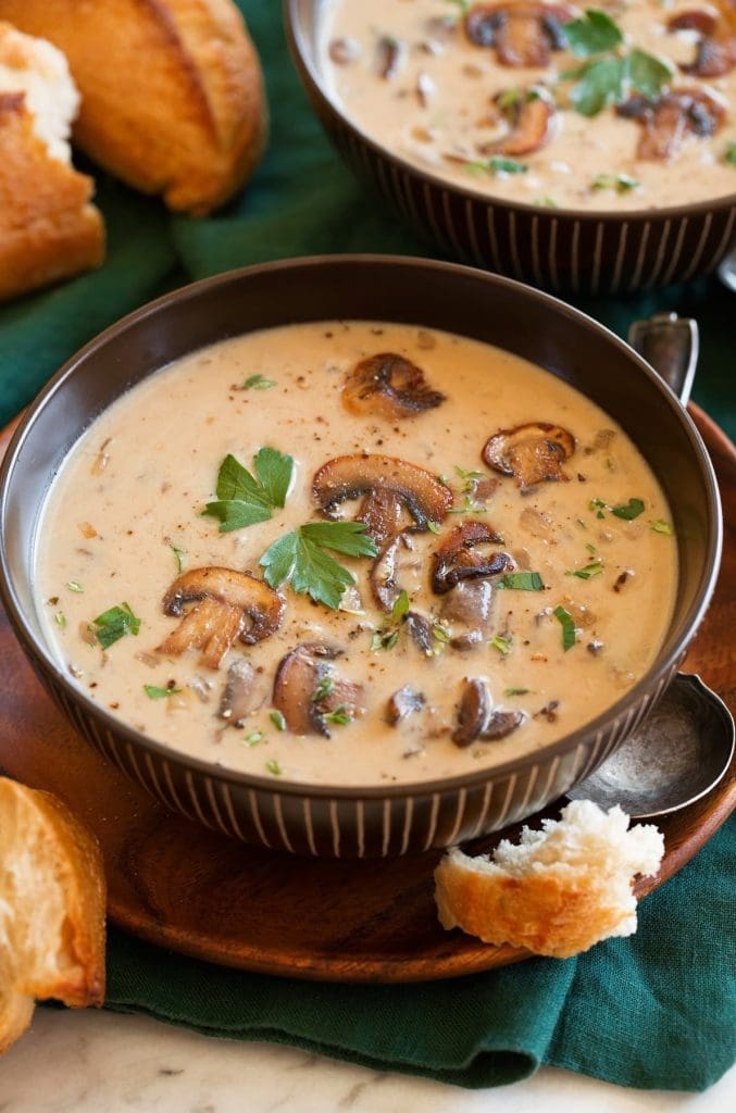 विधि : मशरूम और प्याज को बारीक काट लें। अब ऑलिव ऑयल और मक्खन को गर्म कर इसमें लहसुन-अदरक पेस्ट और प्याज भून लें। अब इसमें मशरूम डालकर मीडियम फ्लेम पर 10 मिनट तक भूनें। इसमें 2 गिलास पानी डाल कर 10 मिनट उबालें । अब इसमें काली मिर्च, काला नमक और पानी में घुला कॉर्नफ्लार मिलाएं। इसके साथ ही इसमें क्रीम भी मिलाएं और इसे लगातर चलाते रहें। 10 मिनट और पकाएं और गरमा गरम सर्व करें।
