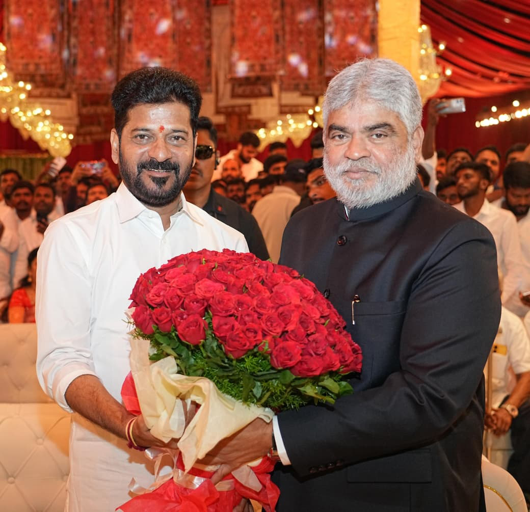 इनके साथ राज्यपाल जिष्णु देव वर्मा, उप-मुख्यमंत्री भट्टी विक्रमार्का, अन्य मंत्री, सांसद, विधायक, एमएलसी, विभिन्न निगमों के अध्यक्ष और कांग्रेस पार्टी के नेताओं ने भी रेवंत को जन्मदिन की शुभकामनाएं दी। यादाद्री श्री लक्ष्मी नरसिम्हा स्वामी मंदिर के पुजारियों ने मुख्यमंत्री आवास पर वैदिक मंत्रोच्चार के साथ रेवंत रेड्डी को आशीर्वाद दिया।