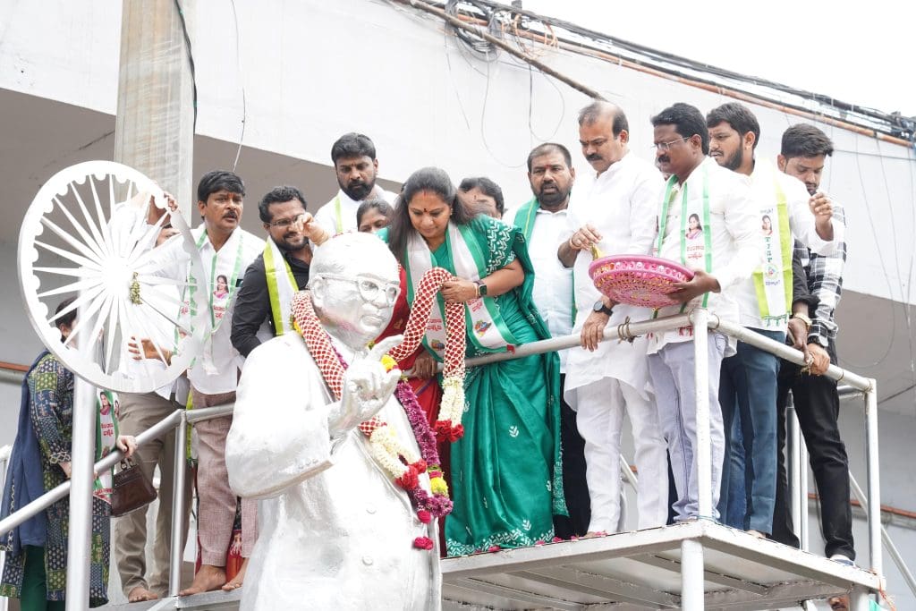 भूख हड़ताल पर जाने से पहले एमएलसी कविता ने सुबह घर पर पूजन करने के बाद सास नवलता व ससुर रामकिशन राव तथा पति अनिल कुमार के पैर छूकर आशीर्वाद लिया। फिर वहां से मिंट कम्पाउंड स्थित समाज सुधारक ज्योतिबा फूले व सावित्री बाई फूले की प्रतिमा पर पुष्पांजलि अर्पित की। तत्पश्चात टैंकबंड स्थित संविधान निर्माता भारत रत्न डॉ. बी.आर. अंबेडकर की प्रतिमा पर पुष्पांजलि अर्पित करने के बाद कविता धरना चौक पहुँची।