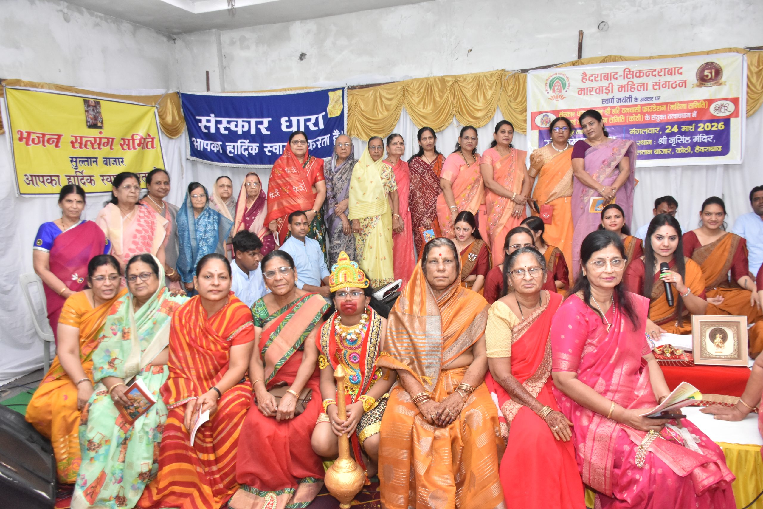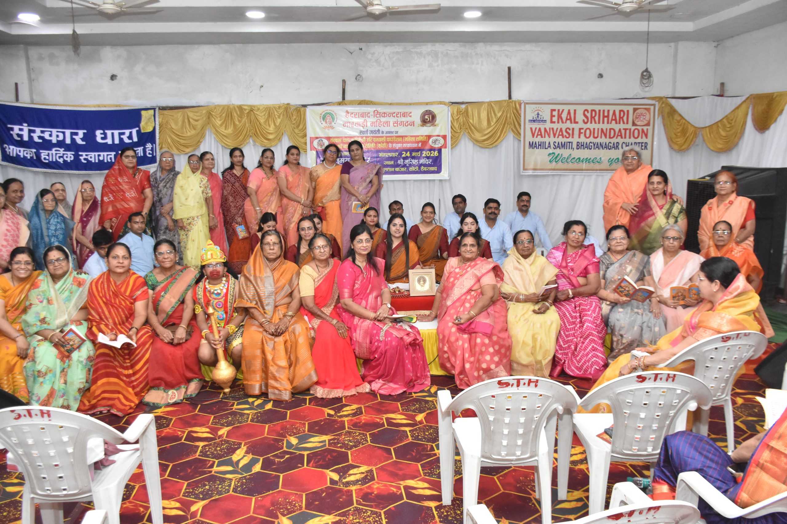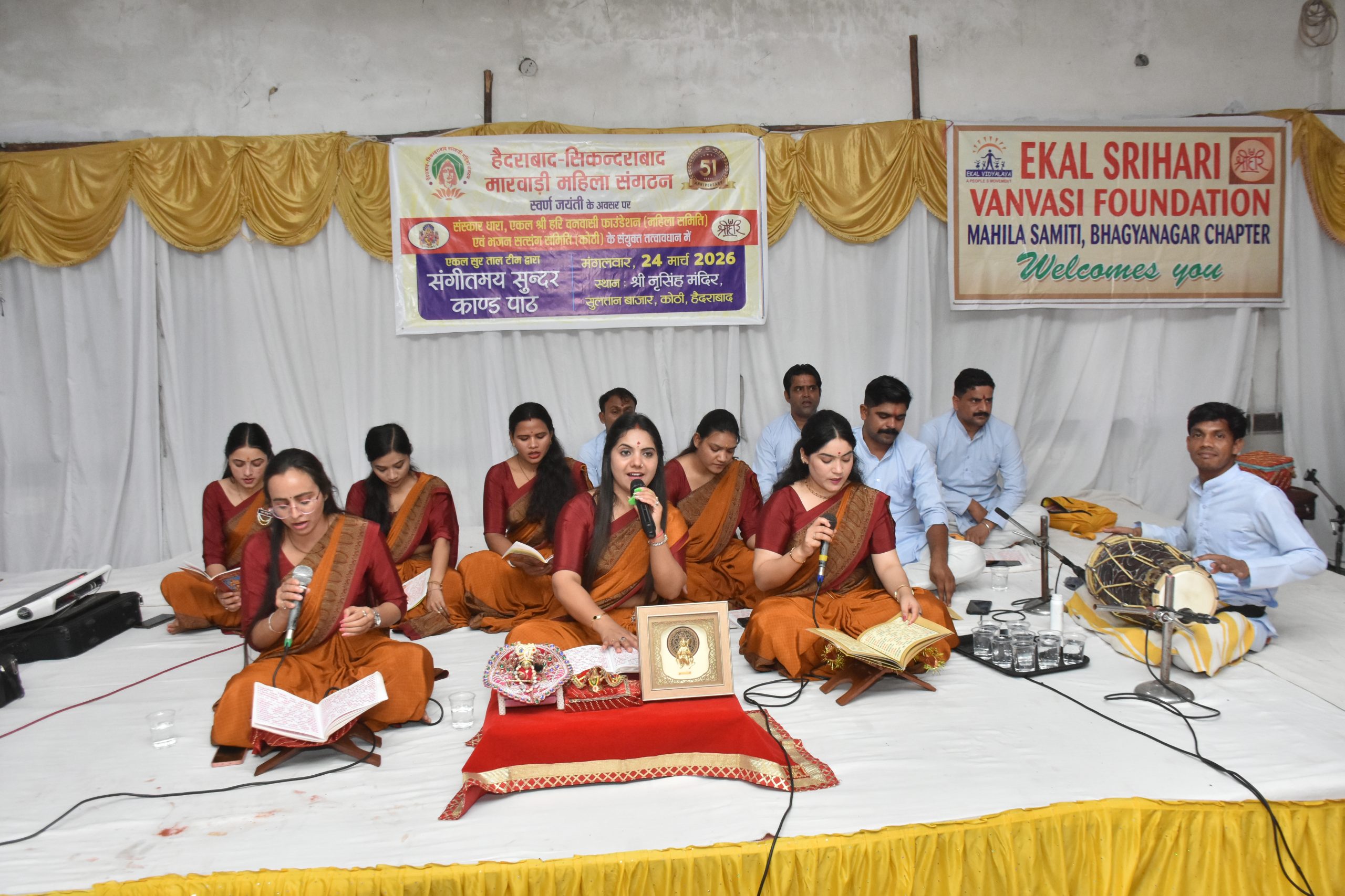 हैदराबाद, हैदराबाद-सिकंदराबाद मारवाड़ी महिला संगठन की स्वर्ण जयंती के अवसर पर संस्कार धारा, एकल श्री हरि वनवासी फाउंडेशन (महिला समिति) एवं भजन सत्संग समिति (कोठी) के संयुक्त तत्वावधान में संगीतमय सुंदरकांड पाठ का आयोजन सुल्तान बाजार स्थित श्री नृसिंह मंदिर में किया गया।