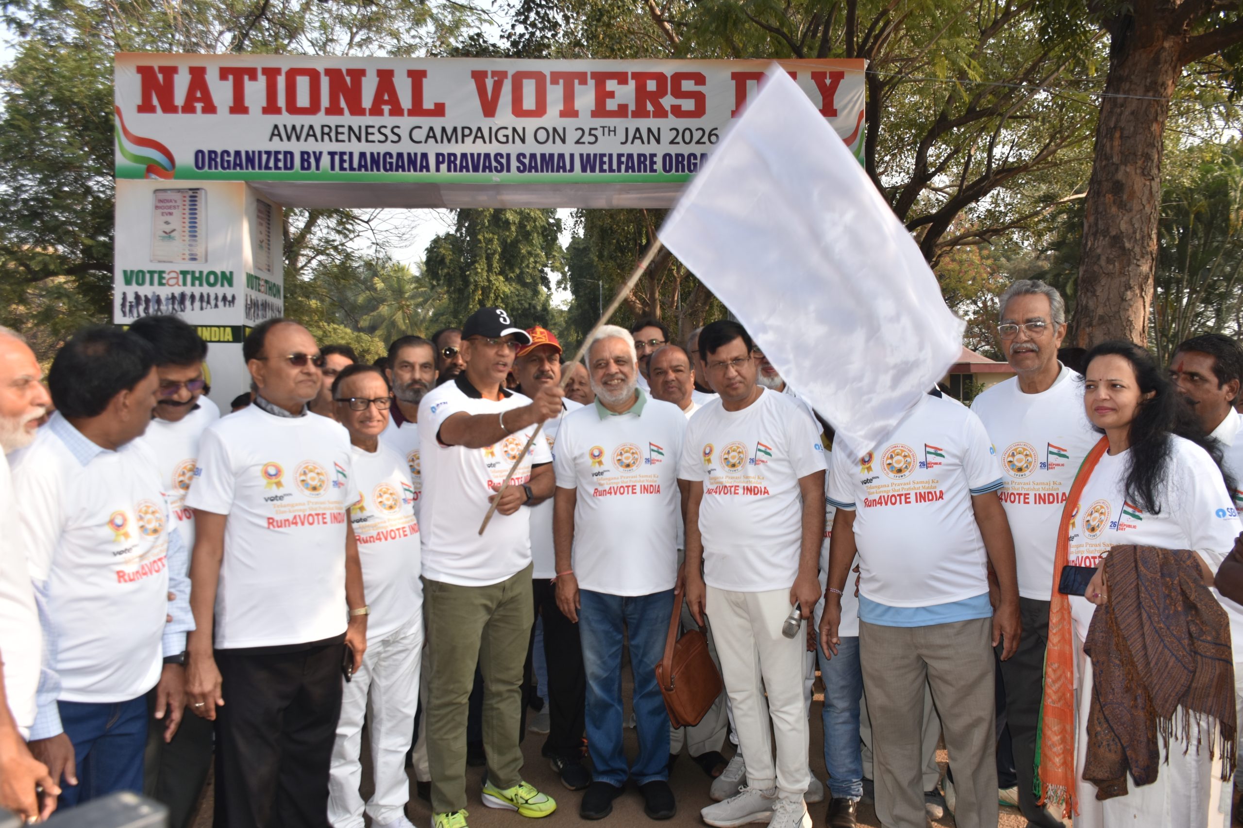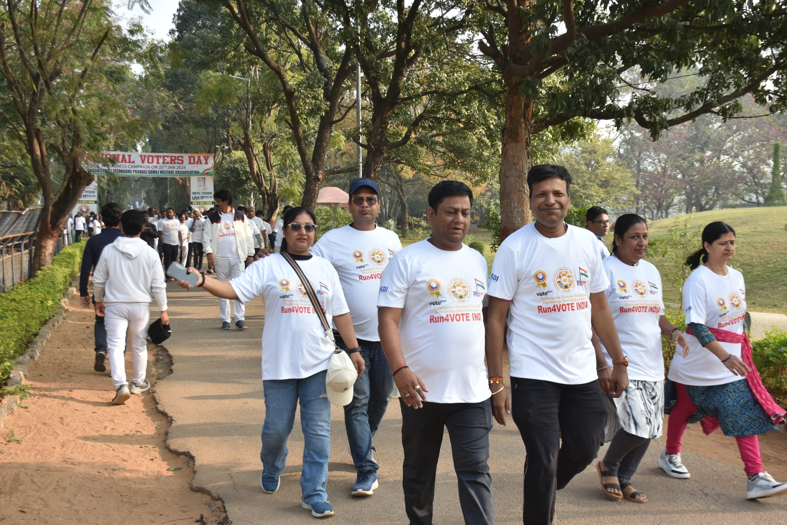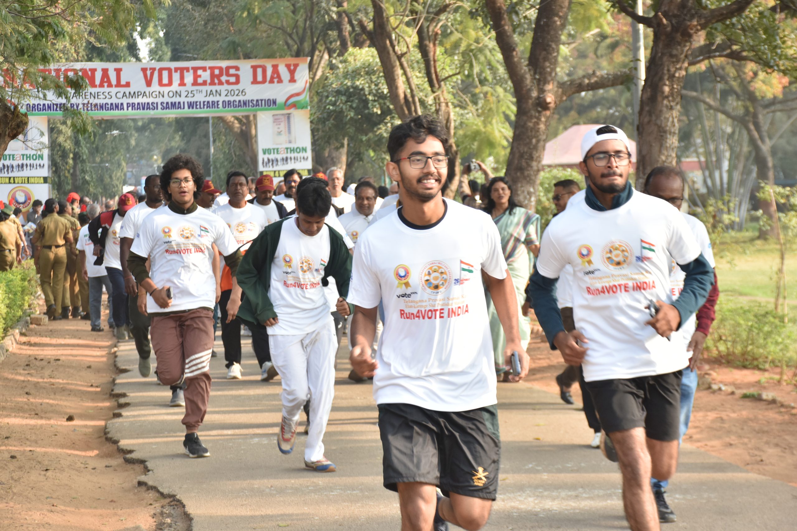 हैदराबाद, संजीवैया पार्क, नेकलेस रोड पर राष्ट्रीय मतदाता दिवस जागरूकता अभियान के अंतर्गत ओथ टू वोट एवं रन फॉर इंडिया (वोटाथन) में लोकतंत्र का जीवंत, अनुशासित और प्रेरणादायक उत्सव देखने को मिला। कार्यक्रम में सभी उम्र और पेशे के नागरिकों ने उत्साह से भाग लिया, जो भारत के संविधान, लोकतांत्रिक मूल्यों और चुनावी भागीदारी के प्रति साझा प्रतिबद्धता से एकजुट हुए।