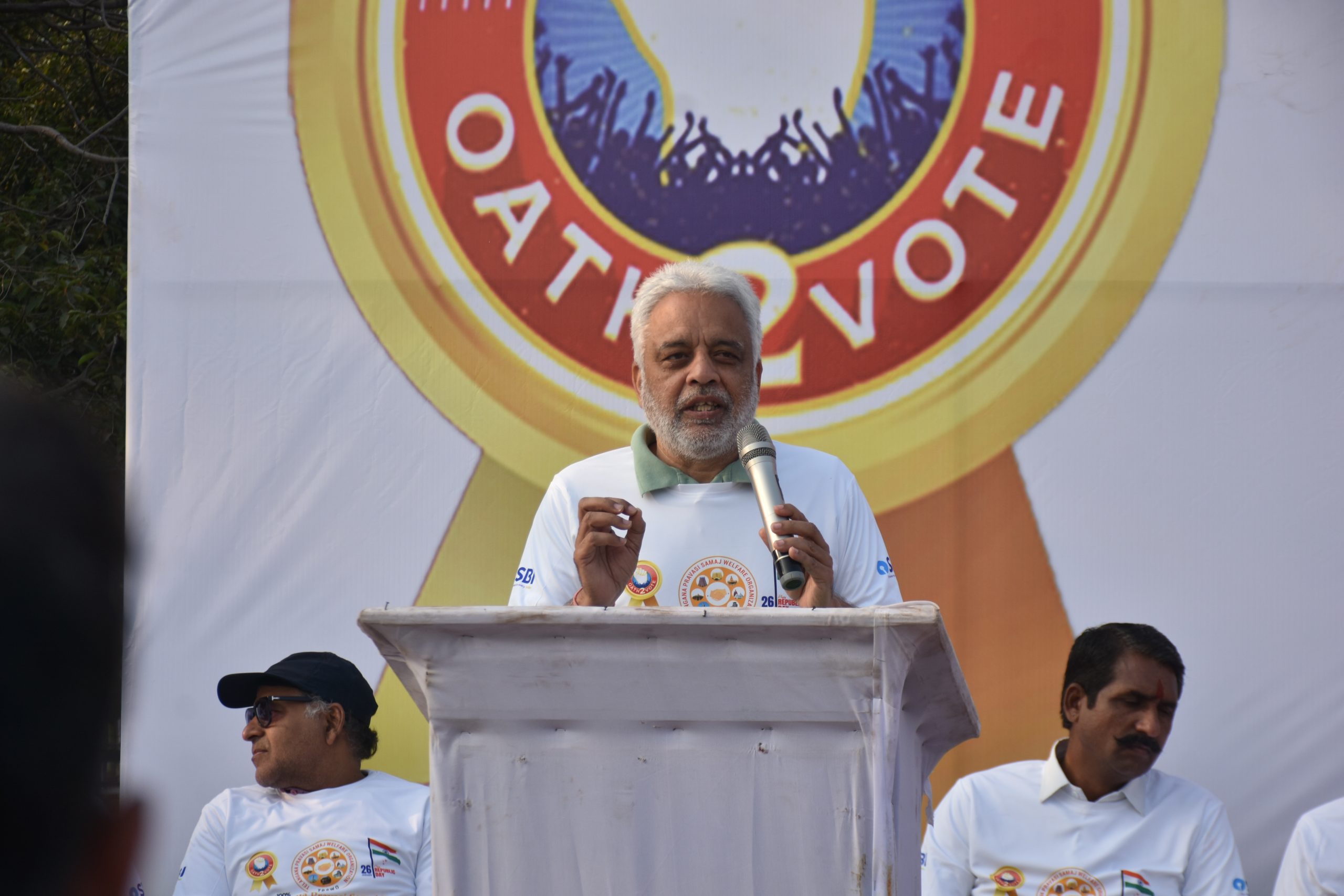 ओथ टू र्वेट अभियान के उद्देश्यों के बारे में विस्तार से बताते हुए नागरिकों विशेष रूप से युवाओं और पहली बार वोट देने वालों से आग्रह करते हुए कहा कि वह मतदान को केवल एक अधिकार नहीं, बल्कि संवैधानिक जिम्मेदारी समझें। इसके बाद दर्शकों को ओथ टू वोट की शपथ के बारे में बताया गया, जिसमें सभी ने प्रतिबद्धता को दोहराया। उन्होंने हर चुनाव में वोट देना, लोकतांत्रिक मूल्यों को बनाए रखना, स्वतंत्र और निष्पक्ष चुनावों का समर्थन करना और संविधान का सम्मान करने की प्रेरणा दी। मेरा वोट, मेरा गौरव और मेरा गणतंत्र, मेरी ज़िम्मेदारी जैसे नारे कार्यक्रम स्थल पर गूँजते रहे।