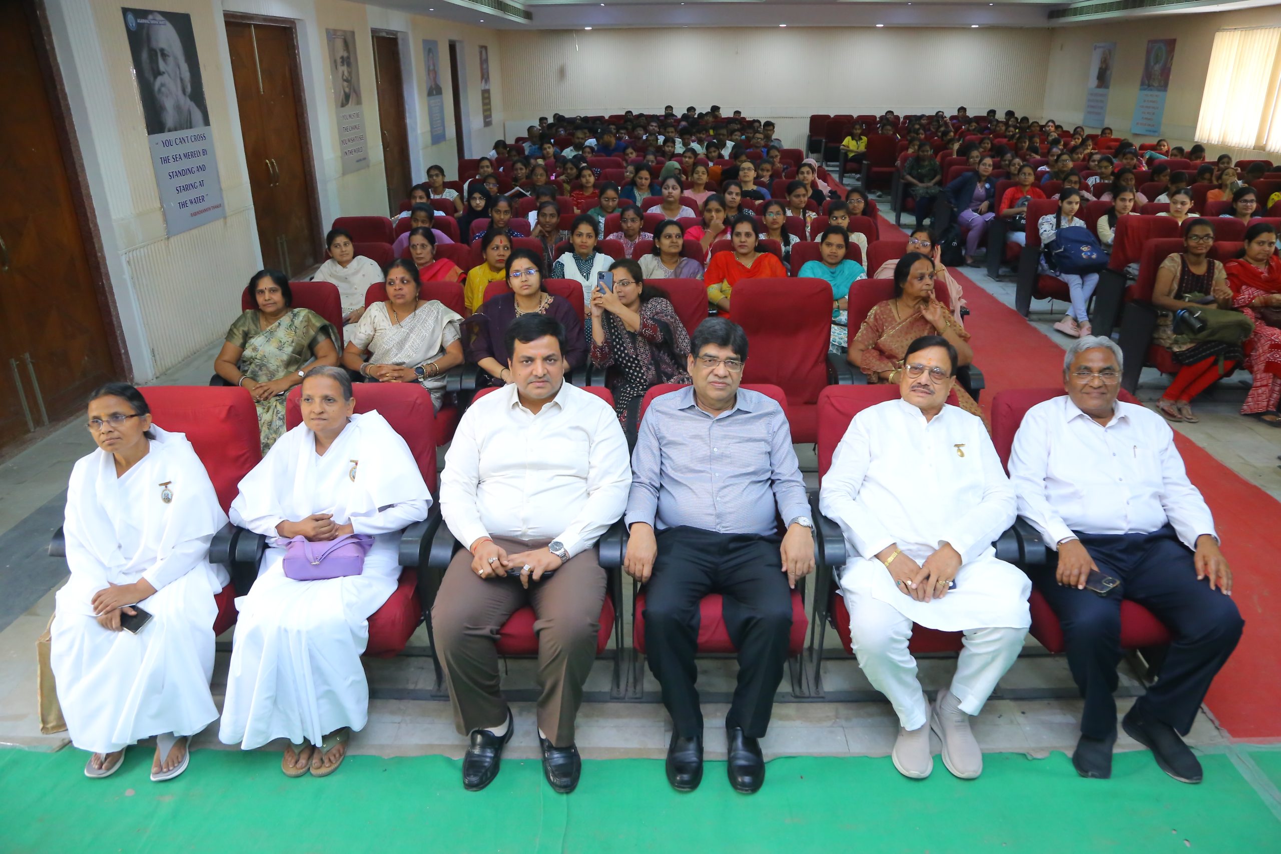 मुख्य अतिथि मध्य प्रदेश उच्च न्यायालय सेवानिवृत्त न्यायाधीश न्यायमूर्ति बी.डी. राठी ने सकारात्मक सोच, आत्म सम्मान, समय प्रबंधन, लक्ष्य निर्धारण तथा जीवन मूल्यों के महत्व पर विस्तार से प्रकाश डालते हुए विद्यार्थियों को जीवन में उच्च आदर्श स्थापित करने और निरंतर प्रयासरत रहने का संदेश दिया। उन्होंने कहा कि व्यक्तित्व दो तरह के होते हैं – भौतिक व आध्यात्मिक। आध्यात्मिक व्यक्तित्व का विकास सर्वनिहित चैतन्य शक्ति को जागृत करने और स्वयं को पहचान से होता है।