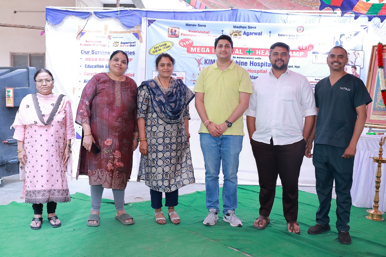 यहाँ अग्रवाल सेवा दल के अजीत गुप्ता द्वारा जारी प्रेस विज्ञप्ति के अनुसार, अवसर पर किम्स सनशाइन हॉस्पिटल बेगमपेट द्वारा जनरल फिजिशियन, कार्डियोलॉजी, ऑर्थोपेडिक, ईसीजी, 2डी ईको, बीएमडी, रक्तचाप, आरबीएस की सेवा प्रदान की गयी, जिसमें डॉ. गायत्री, डॉ. मबरूर सहित नर्सिंग स्टाफ रानी, संगीता, मल्लेश्वरी, अनुषा, बीएमडी टेक अनिल, 2डी ईको टेक अक्षिता, मार्केटिंग के जगदीश ने सहयोग प्रदान किया।