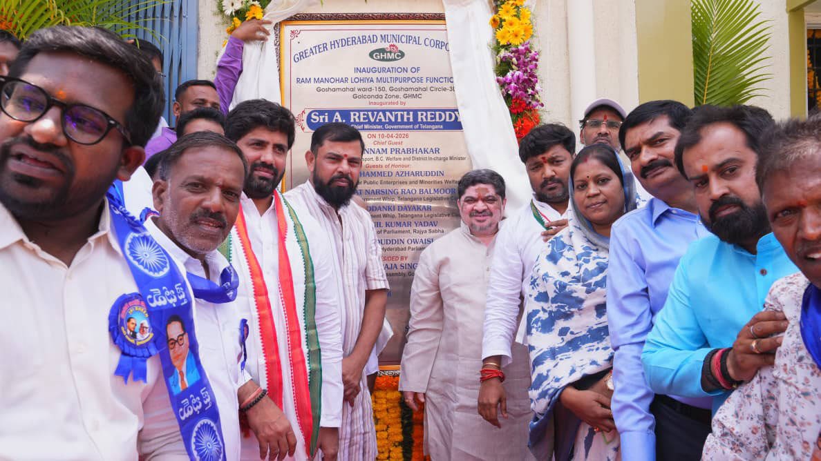हैदराबाद, हैदराबाद के प्रभारी मंत्री पोन्नम प्रभाकर ने गोशामहल में राम मनोहर लोहिया मल्टी पर्पज फंक्शन हॉल का उद्घाटन किया। यह भवन जीएचएमसी द्वारा 3.92 करोड़ रुपये की निधियों से दो चरणों में निर्मित किया गया। कार्यक्रम में राज्यसभा सांसद अनिल कुमार यादव, विधायक राजा सिंह, फिशरीज कॉर्पोरेशन के चेयरमैन मेट्टू साई कुमार, अन्य प्रमुख नेता और अधिकारी उपस्थित रहे।