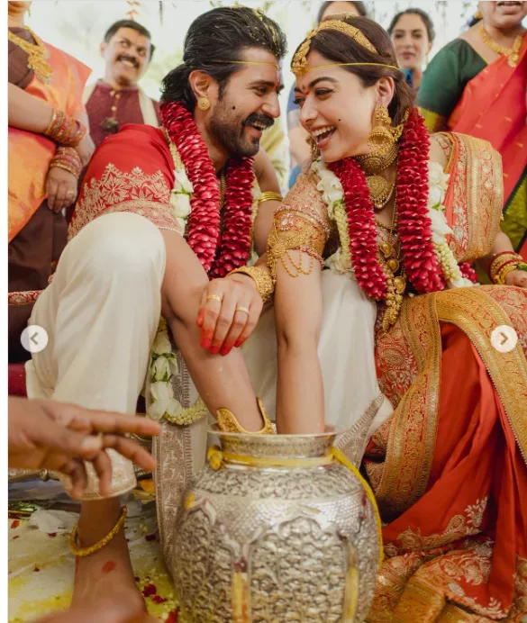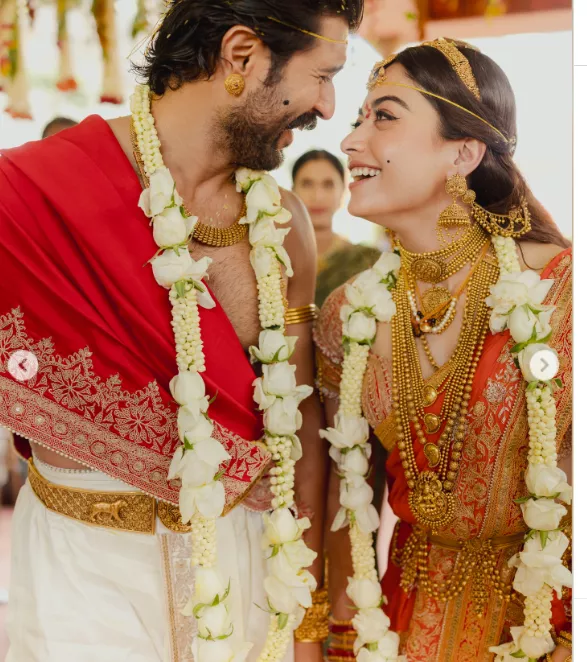 जोड़ी को फैंस ने परफेक्ट बताया है शादी के जोड़े में कपल रॉयल लग रहा है, वहीं दुल्हन बनीं रश्मिका की खूबसूरती का जवाब नहीं है. वो स्टनिंग ब्राइड लग रही हैंI