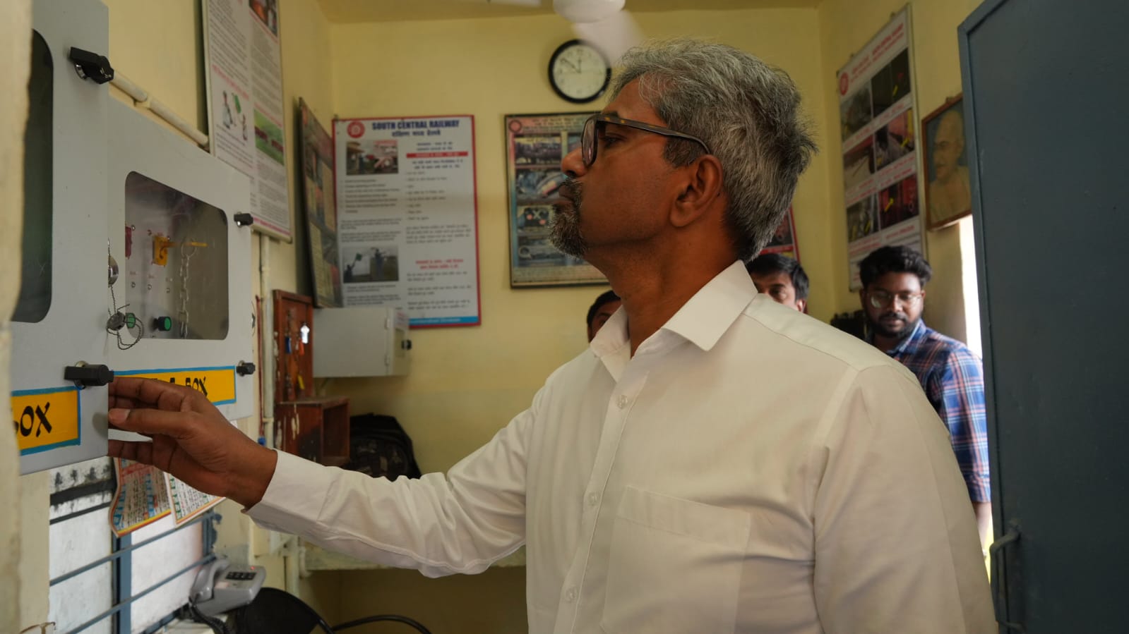 साथ ही रनिंग स्टाफ से संवाद कर भोजन के मेन्यू और गुणवत्ता के बारे में जानकारी ली। उन्होंने कर्व संख्या 33 के निरीक्षण के दौरान ट्रैक की सुरक्षा संबंधी मापदंडों का परीक्षण किया। साथ ही सेक्शन में स्थित प्रमुख पुल संख्या 178 का निरीक्षण कर पुल से संबंधित समग्र सुरक्षा पहलुओं का परीक्षण किया। मार्ग में उन्होंने भालकी स्टेशन के समीप प्वाइंट संख्या 13 पर सिग्नलिंग एवं इंजीनियरिंग कार्यों का भी निरीक्षण किया।