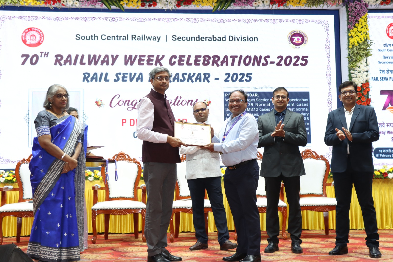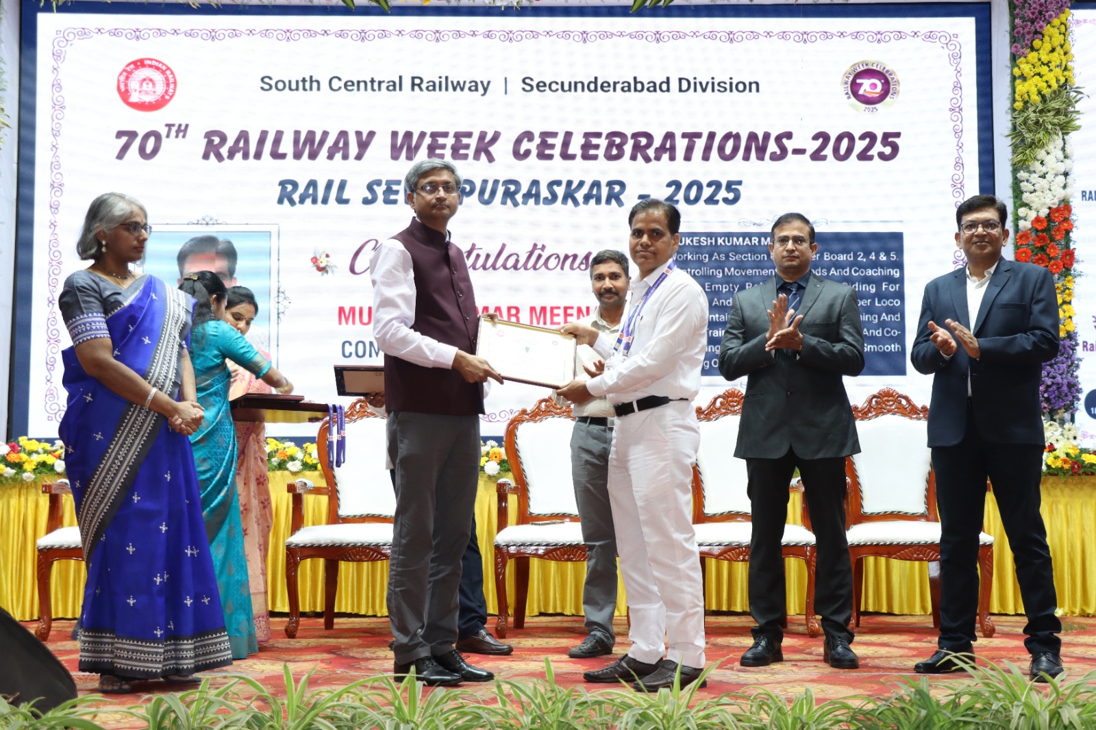 अवसर पर डॉ. आर. गोपालकृष्णन ने सिकंदराबाद मंडल के 52 उत्कृष्ट कर्मचारियों को उनके अनुकरणीय प्रदर्शन, सुरक्षा के प्रति अटूट प्रतिबद्धता, परिचालन उत्कृष्टता और समर्पित ग्राहक सेवा के लिए सम्मानित किया। जानकारी देते हुए बताया गया कि डिवीजन के गौरव को बढ़ाते हुए सिकंदराबाद डिवीजन ने जोनल स्तर पर आठ शील्ड (विशिष्ट रेल सेवा पुरस्कार) हासिल की हैं। यह पुरस्कार डिवीजन की लगातार उपलब्धियों तथा उच्च प्रदर्शन मानकों को दर्शाते हैं।