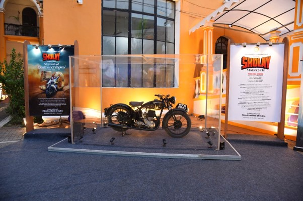 शोले की 50वीं सालगिरह पर सम्मान के तौर पर, आईएफएफआई ने फ़िल्म की मशहूर मोटरबाइक को फेस्टिवल ग्राउंड में दिखाया है, जहाँ यह सिनेमा प्रेमियों के लिए आकर्षण का केन्द्र बनी हुई है।