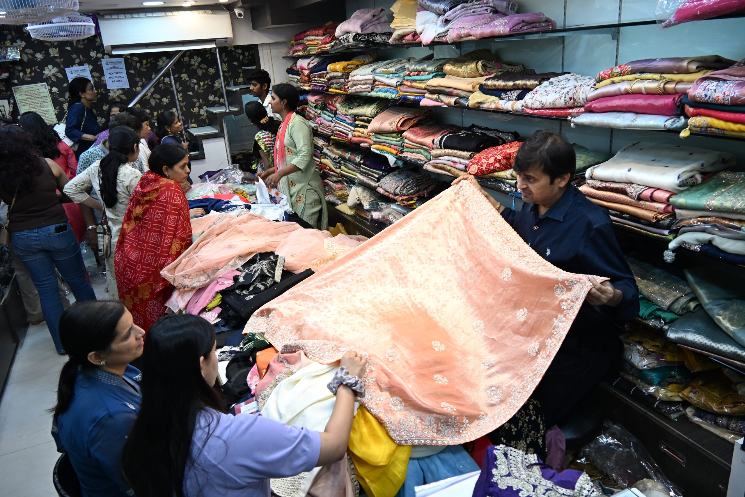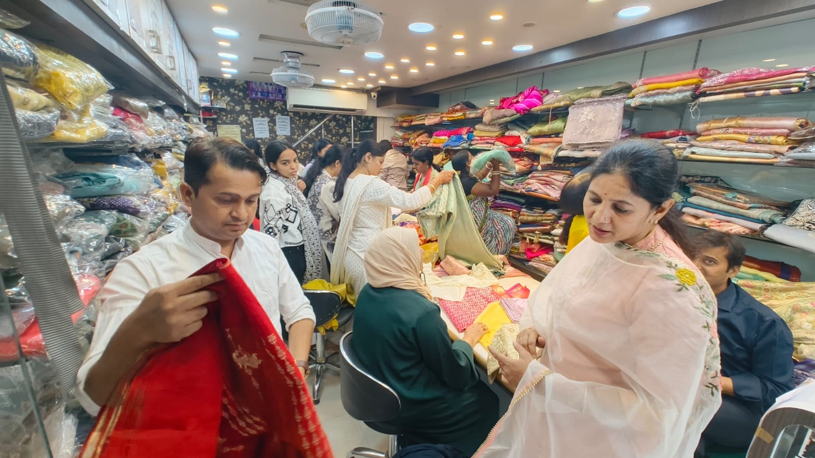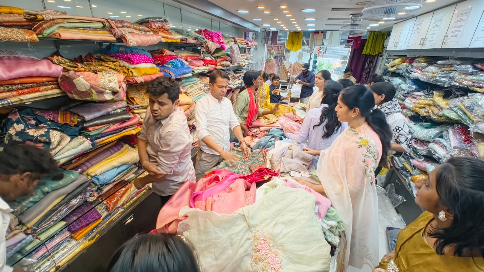 इसी प्रकार 7,500 रुपये से 20,000 रुपये के साड़ी ऑफर में 5,000 प्लस जीएसटी के साथ प्राप्त की जा सकती है। इसी प्रकार 15,000 रुपये से 40,000 रुपये तक की साड़ी मात्र दस हजार में प्लस जीएसटी के साथ प्राप्त की जा सकती है। इसके अलावा सिले हुए सलवार सूट्स और बगैर सिले सलवार सूट्स पर विशेष ऑफर उपलब्ध है। इसी तरह घाघरे एवं गाउन इंडो वेस्टर्न पर भारी छूट उपलब्ध है।
