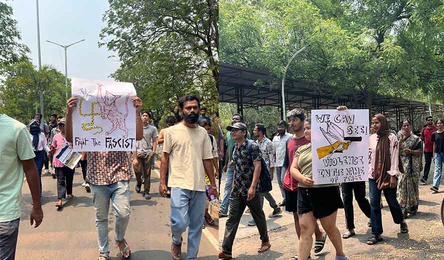 हैदराबाद विश्वविद्यालय की जमीन पर छात्रों का विरोध
