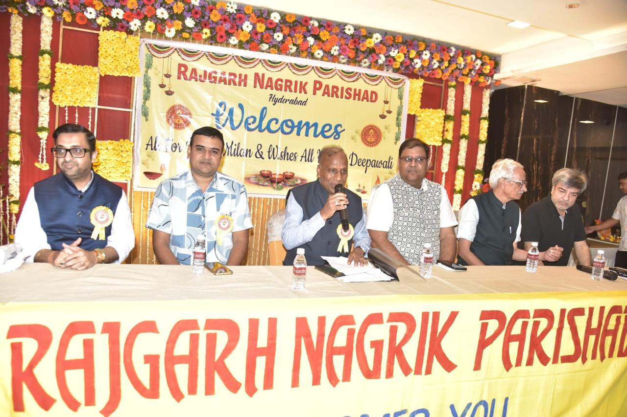 हैदराबाद, राजगढ़ नागरिक परिषद हैदराबाद की वार्षिक साधारण सभा एवं दीपावली मिलन समारोह हिमायत नगर स्थित होटल वेज व्यंजन में आयोजित किया गया। जारी प्रेस विज्ञप्ति के अनुसार, कार्यक्रम की शुरुआत सदस्यों द्वारा भगवान गणेश की पूजा-आरती के साथ की गई। इसके पश्चात परिषद के अध्यक्ष एम.आर. सुरेखा ने सभी का स्वागत किया। जनार्दन सुरेखा ने कार्यक्रम का संचालन किया। समारोह में उपस्थित पूर्व अध्यक्षों का शॉल ओढ़ाकर सम्मान किया गया।