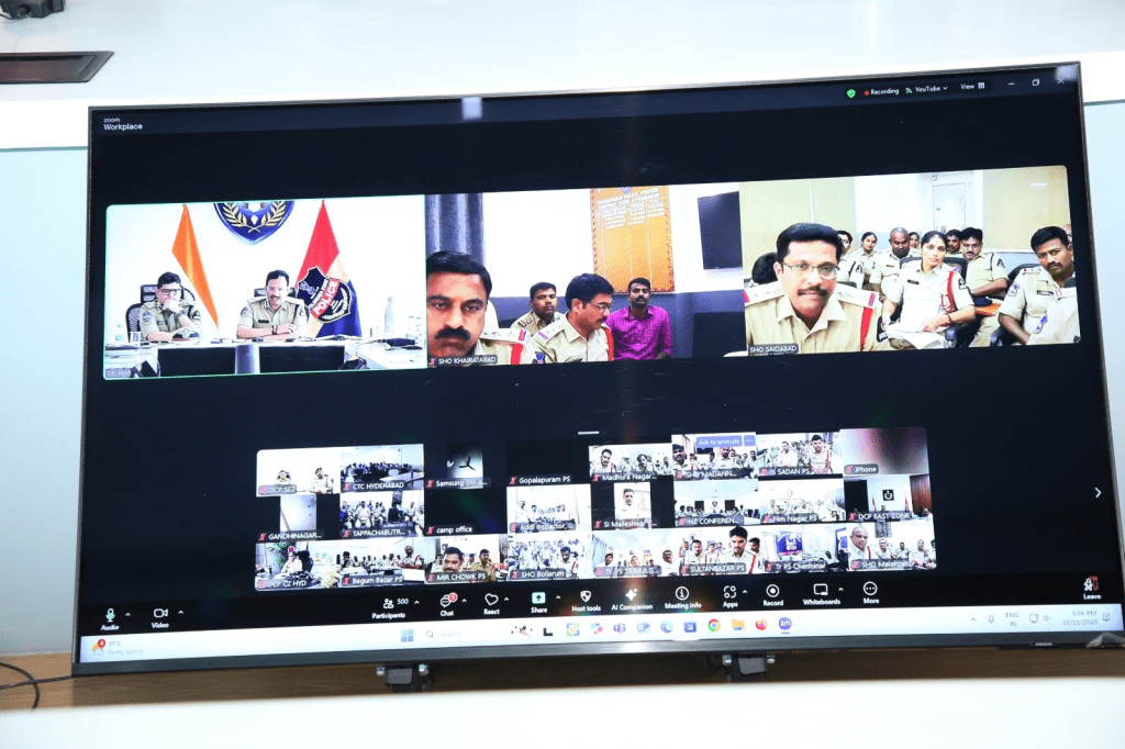 हैदराबाद, नगर पुलिस आयुक्त का कार्यभार संभालने के बाद वी.सी. सज्जनार ने पहली बार सभी विभागों और पुलिस स्टेशनों (कानून व अपराध, यातायात) के अधिकारियों के साथ वीडियो कॉन्फ्रेंस आयोजित की। आयुक्त ने अधिकारियों को हैदराबाद पुलिस की प्रतिष्ठा को और अधिक बढ़ाने के लिए कई सुझाव और सलाह दीं।