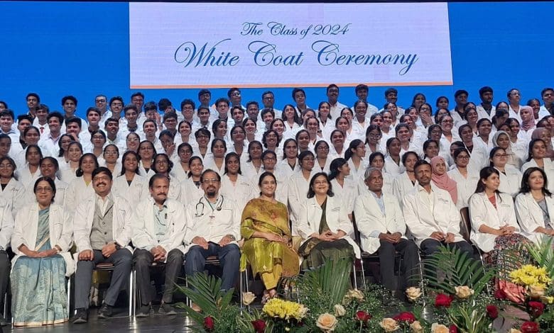 हैदराबाद, अपोलो इंस्टीट्यूट ऑफ मेडिकल साइंसेज एंड रिसर्च, जुबली हिल्स द्वारा आज एमबीबीएस-2024 बैच में प्रवेश लेने वाले के छात्रों के स्वागत हेतु व्हाइट कोट समारोह का आयोजन किया गया। कार्यक्रम में मुख्य अतिथि के रूप में अपोलो हॉस्पिटल्स की मानद प्रोफेसर डॉ. रूमा सिन्हा उपस्थित थीं। अवसर पर छात्रों को व्हाइट कोट प्रदान किए गए।